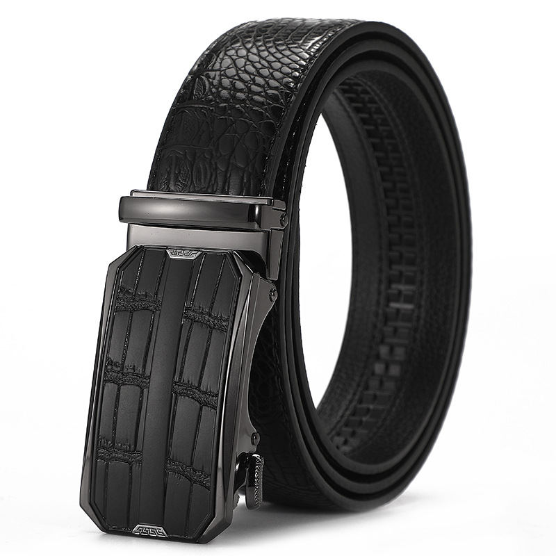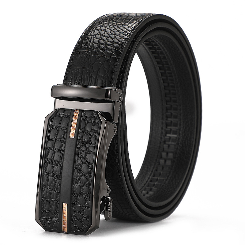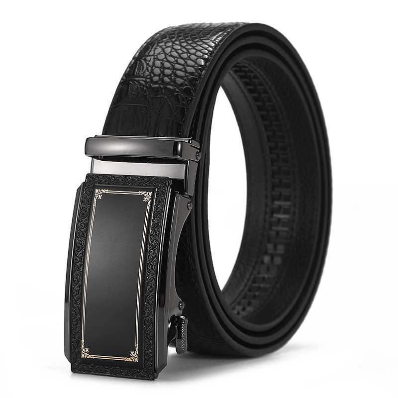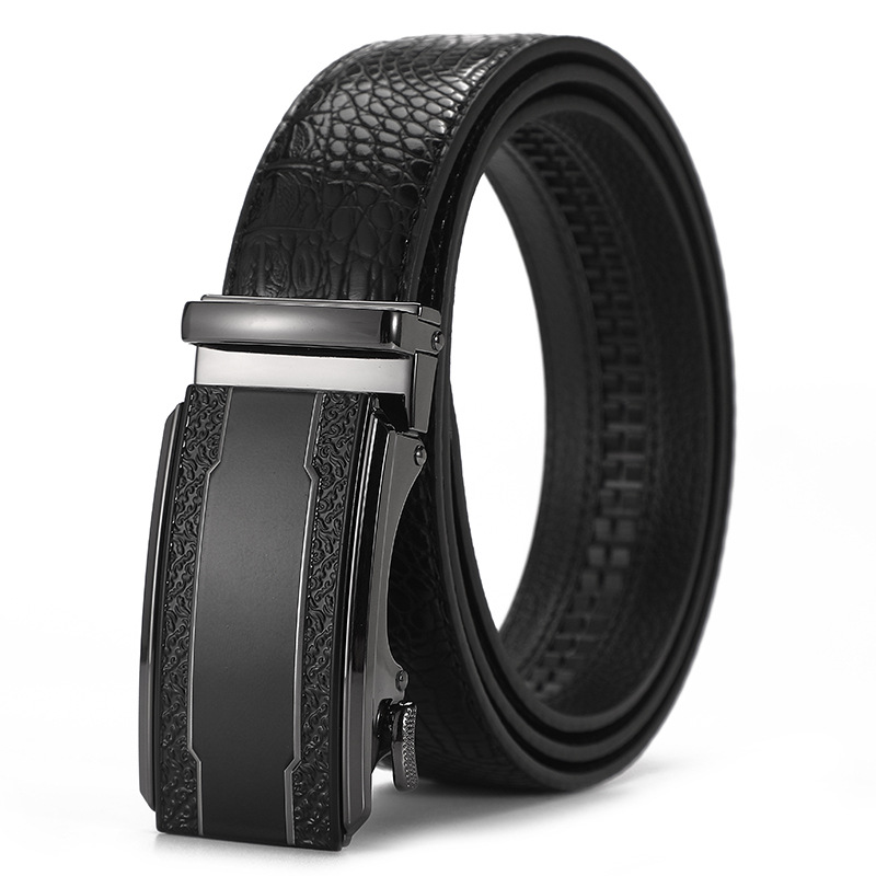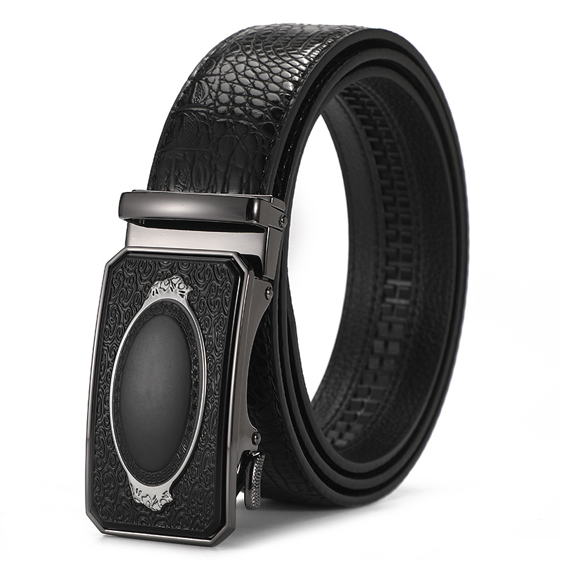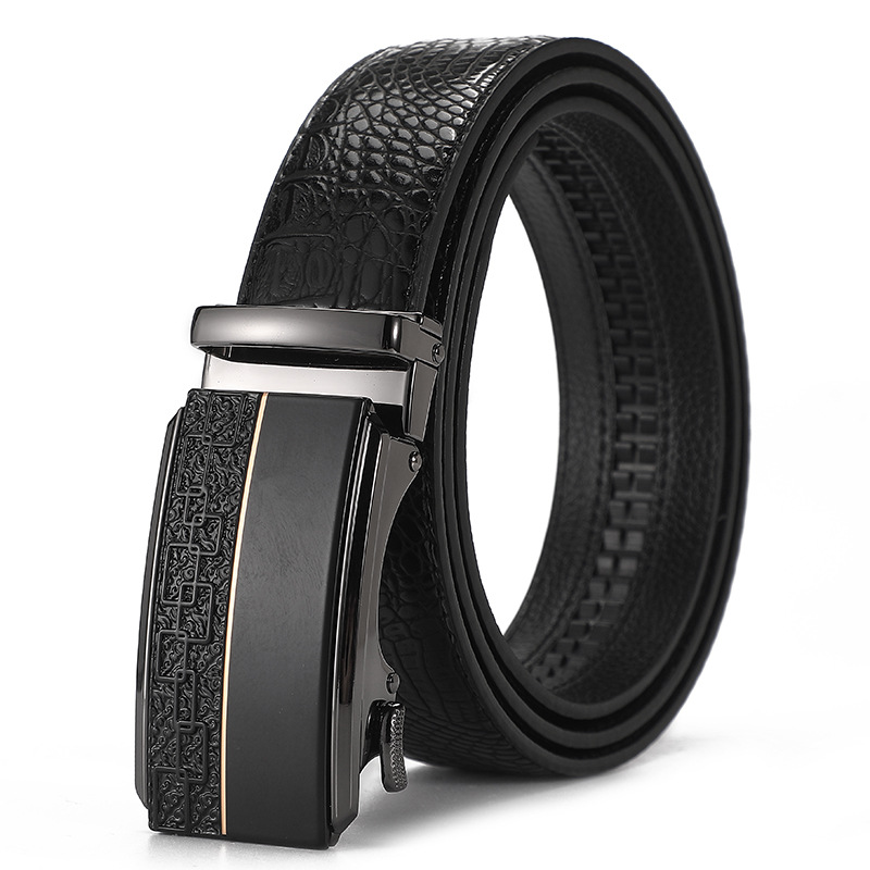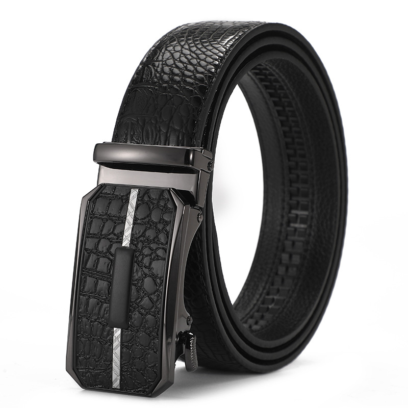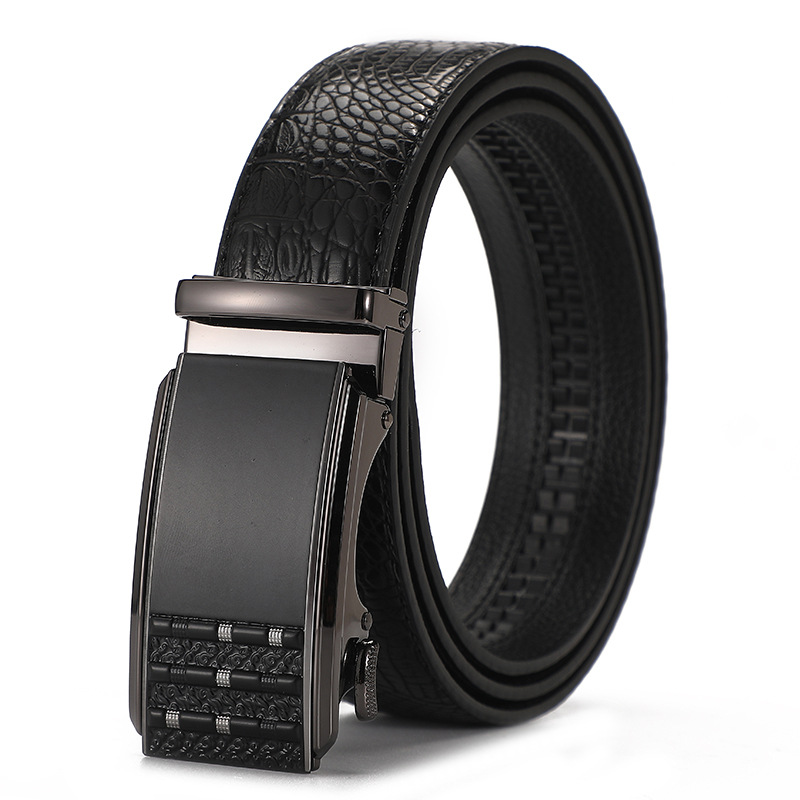 새로운 가죽 벨트 남성 정품 가죽 자동 버클 고급 Cowhide 벨트 남성 유럽과 미국 비즈니스 올 매치 합금 바지 벨트