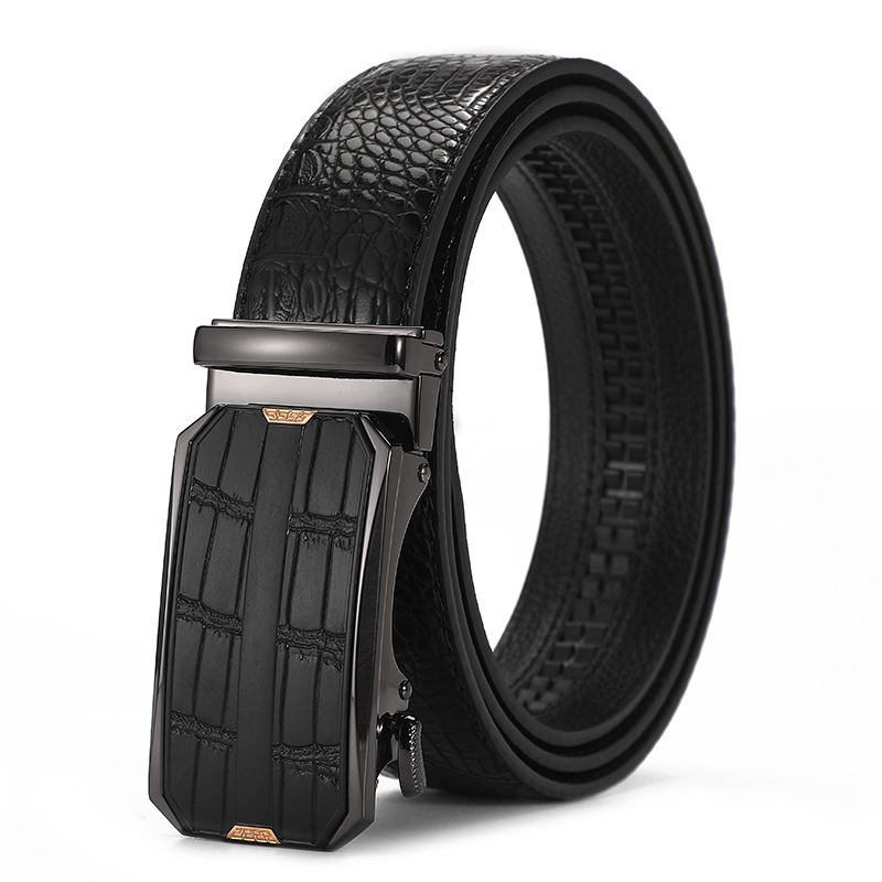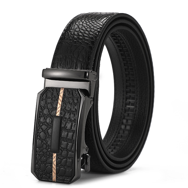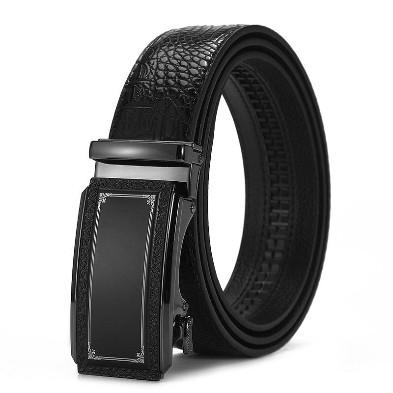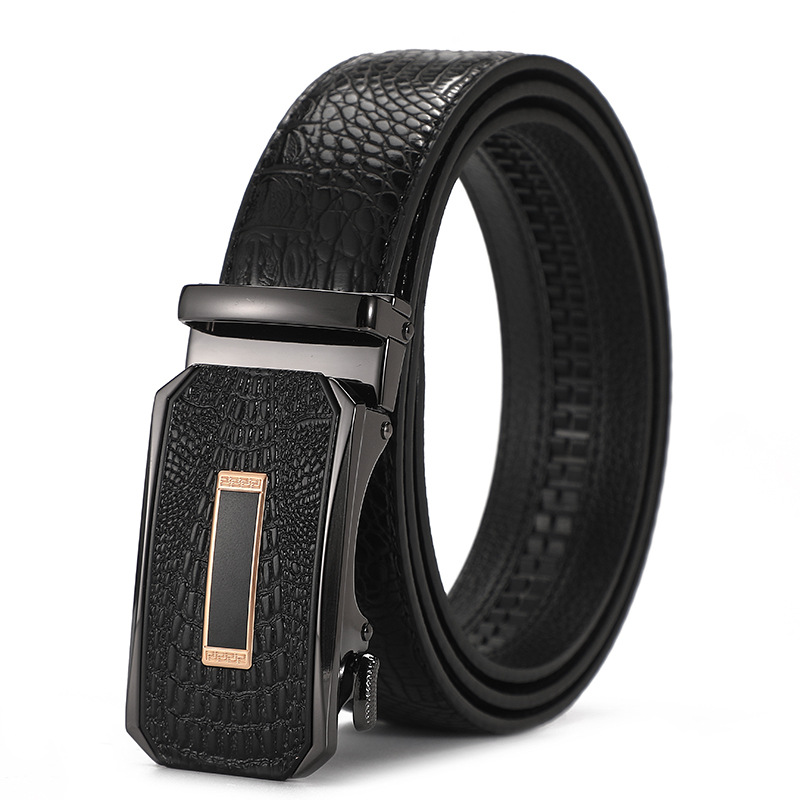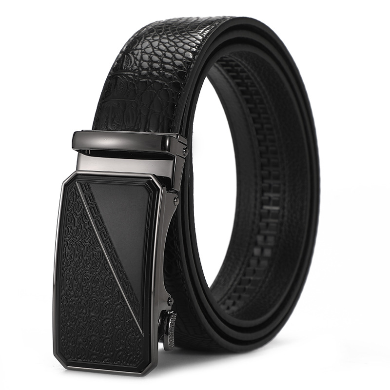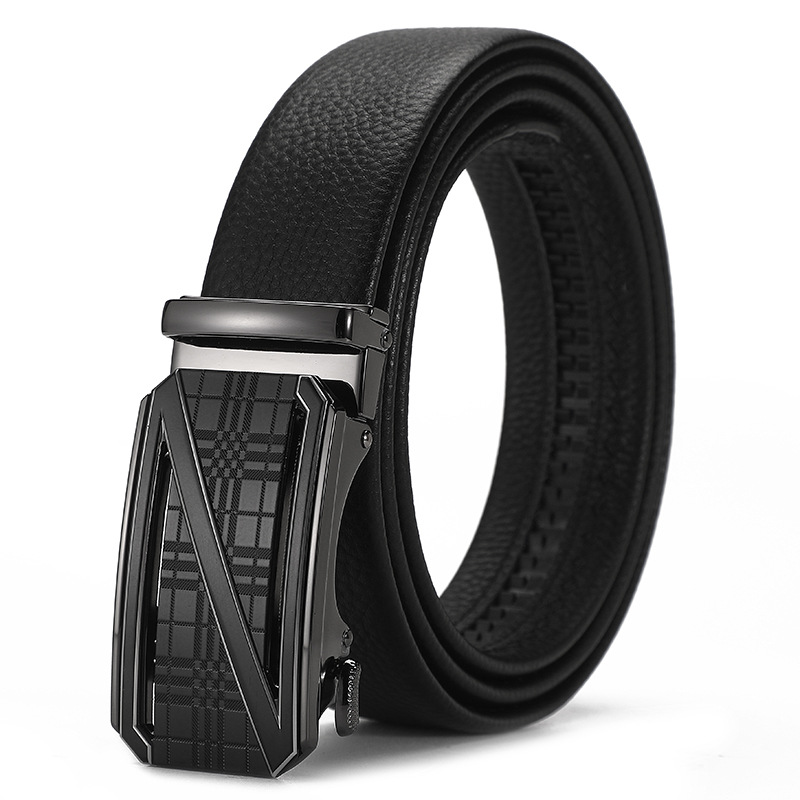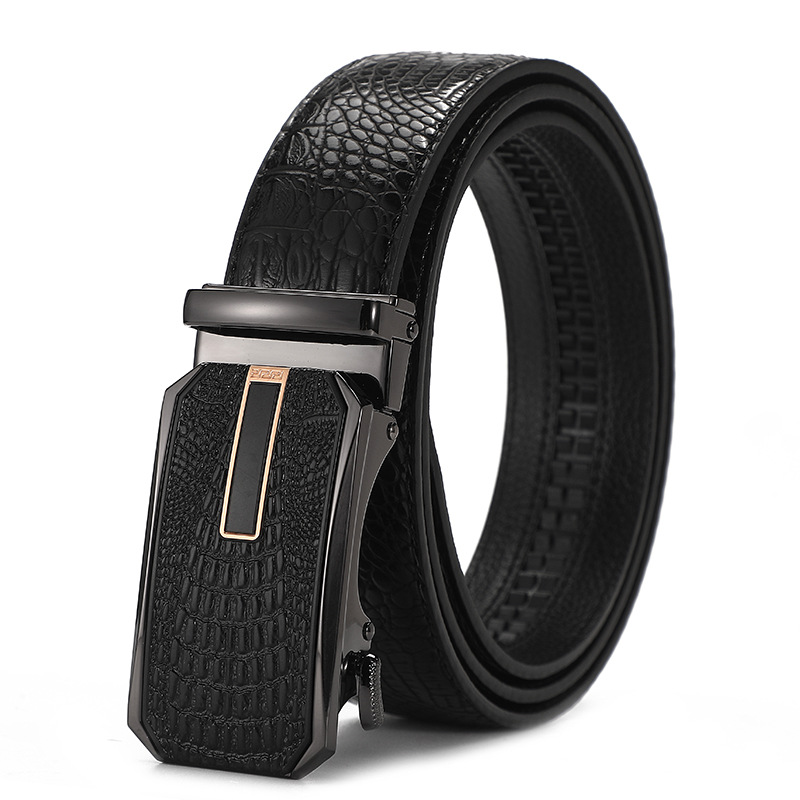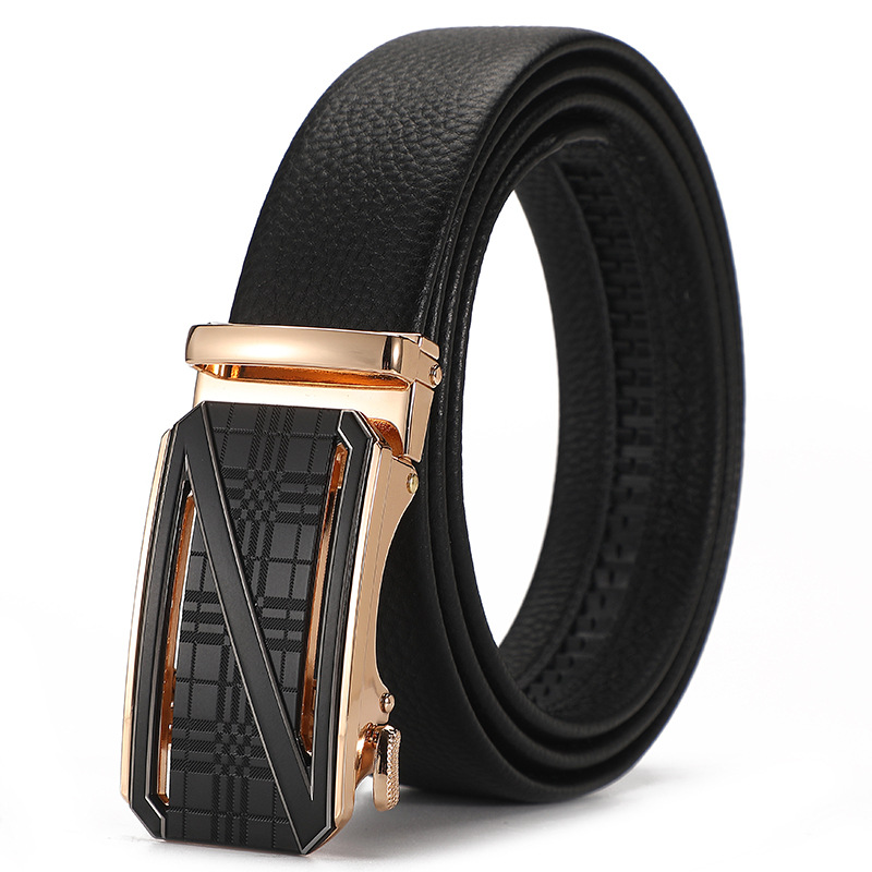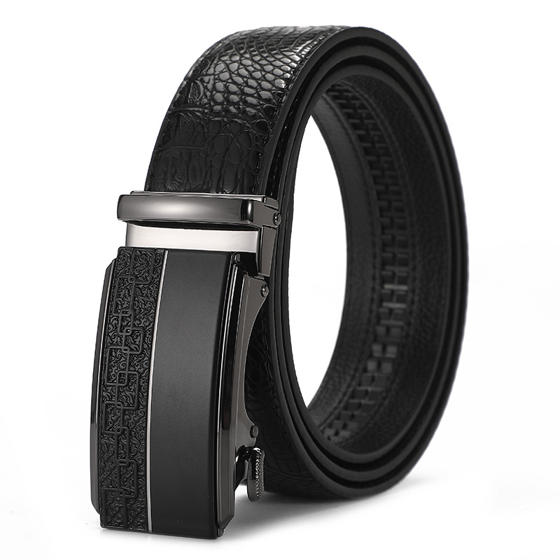 새로운 가죽 벨트 남성 정품 가죽 자동 버클 고급 Cowhide 벨트 남성 유럽과 미국 비즈니스 올 매치 합금 바지 벨트