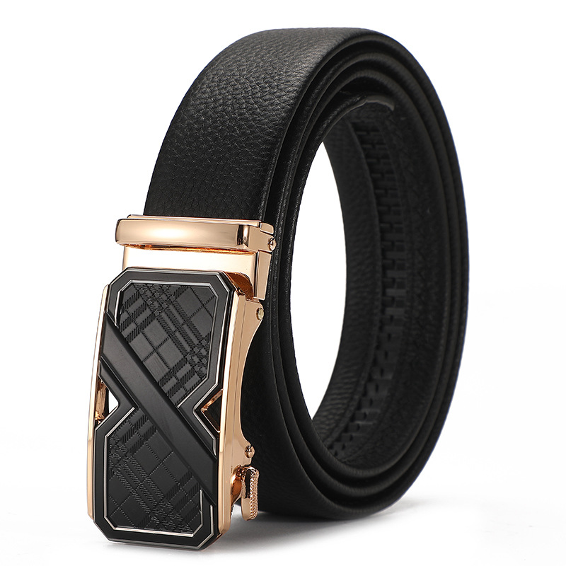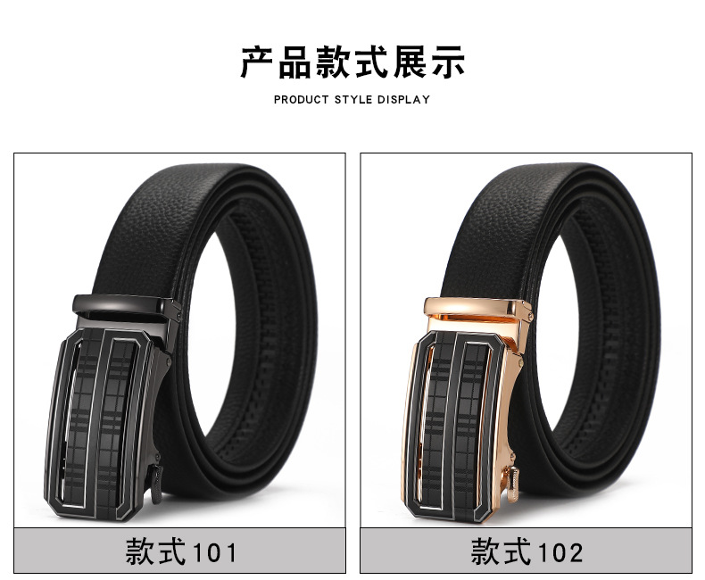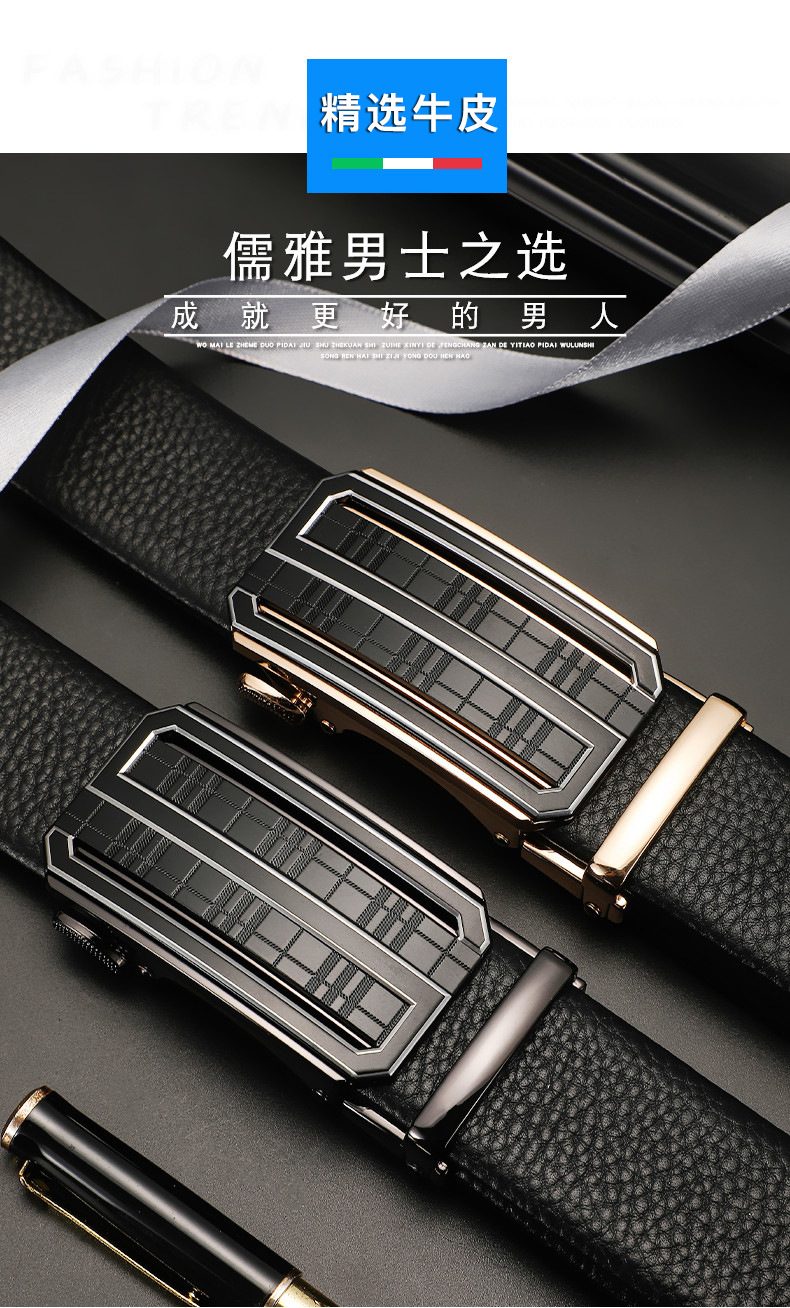새로운 가죽 벨트 남성 정품 가죽 자동 버클 고급 Cowhide 벨트 남성 유럽과 미국 비즈니스 올 매치 합금 바지 벨트스토어 가기