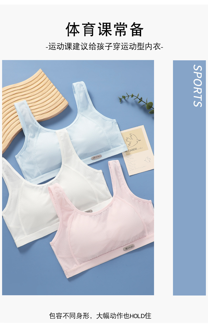 여아 속옷 2 단계 또는 3 단계 중학교 학생 순면 스포츠 충격 방지 조끼 청소년 소녀 개발 브래지어스토어 가기