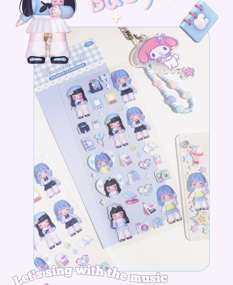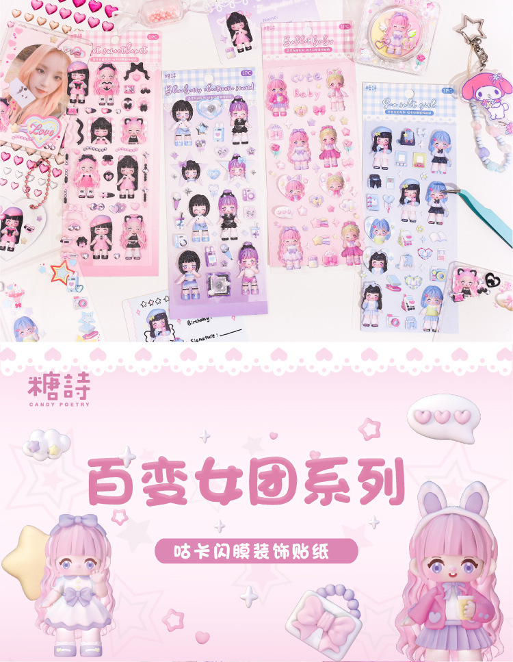설탕시 합성 종이 플래시 필름 장식 스티커 다양한 여성 그룹 시리즈 만화 귀여운 소녀 저널 구 카드 스티커스토어 가기