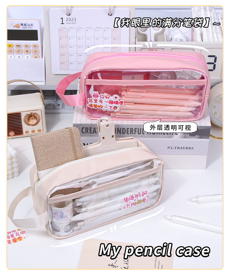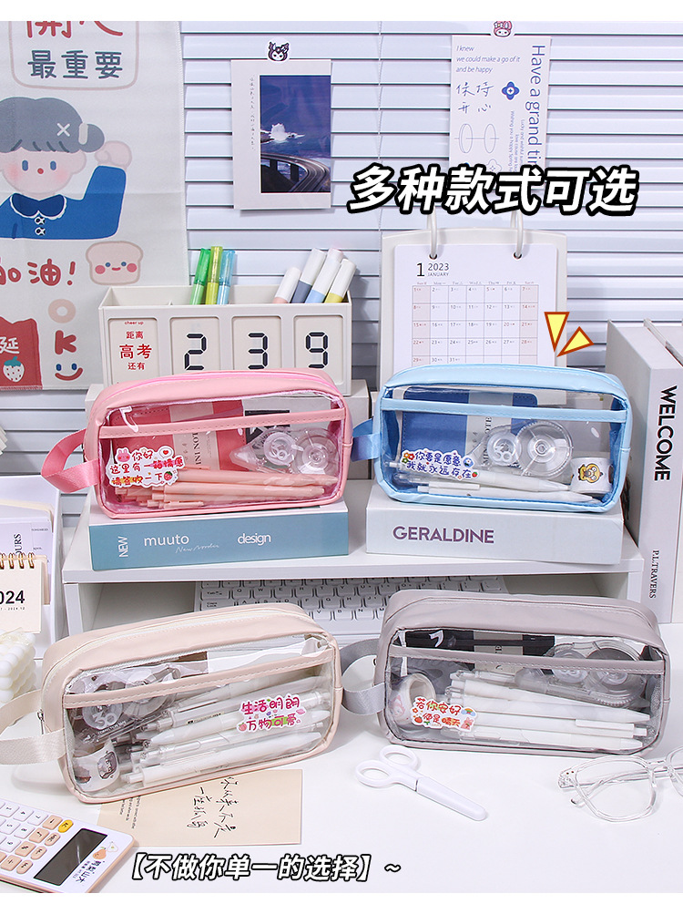 창의적인 특수 투명 필통, 학생 개학 시 고급스러운 대용량 필통, 어린이용 작고 깔끔하고 귀여운 문구스토어 가기