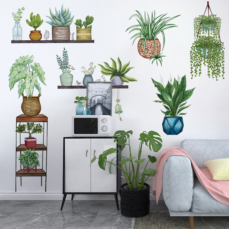 Huizhicai 목회 신선한 식물 화분 벽 스티커 아트 거실 기숙사 침실 장식 복도 Xuan 셀프 페이스트스토어 가기