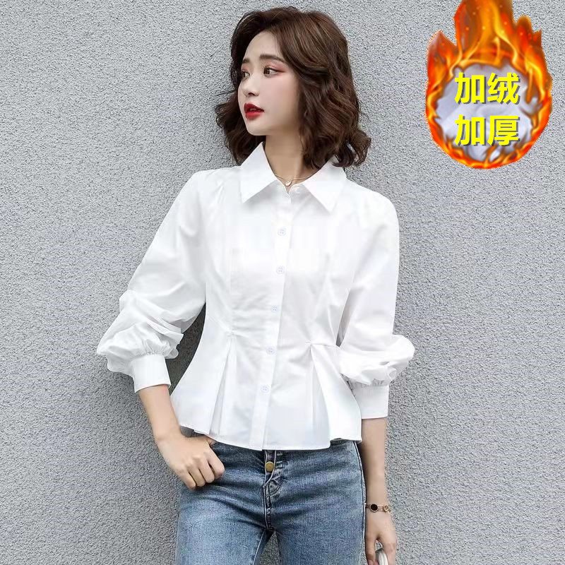 벨벳 안감 두꺼운 가디건 긴팔 디자인 셔츠 여성용 가을 겨울 이너웨어 상의 화이트 보온 스타일 다용도스토어 가기
