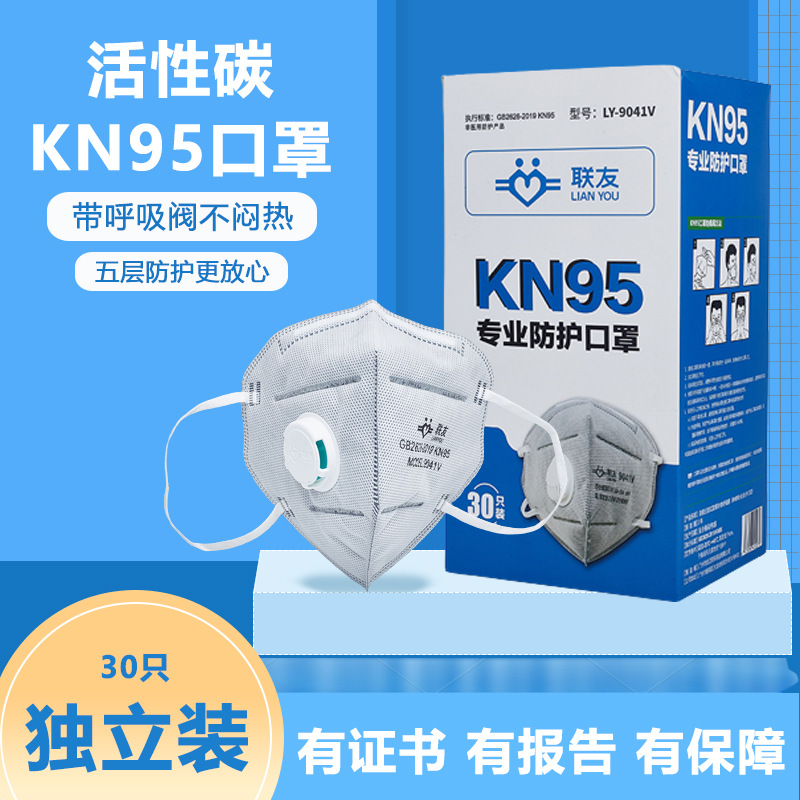 Lianyou kn95 활성탄 마스크 독립 포장 9041v 호흡 밸브가있는 통기성 입체 접이식 먼지 마스크스토어 가기