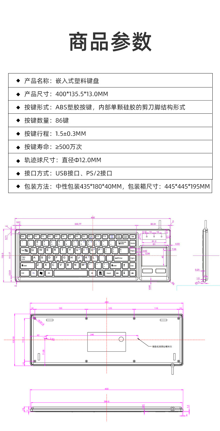 하오위테/하오위지아 DX-87F 산업용 제어 임베디드 플라스틱 키보드, 쿼리 장치, 산업용 컴퓨터