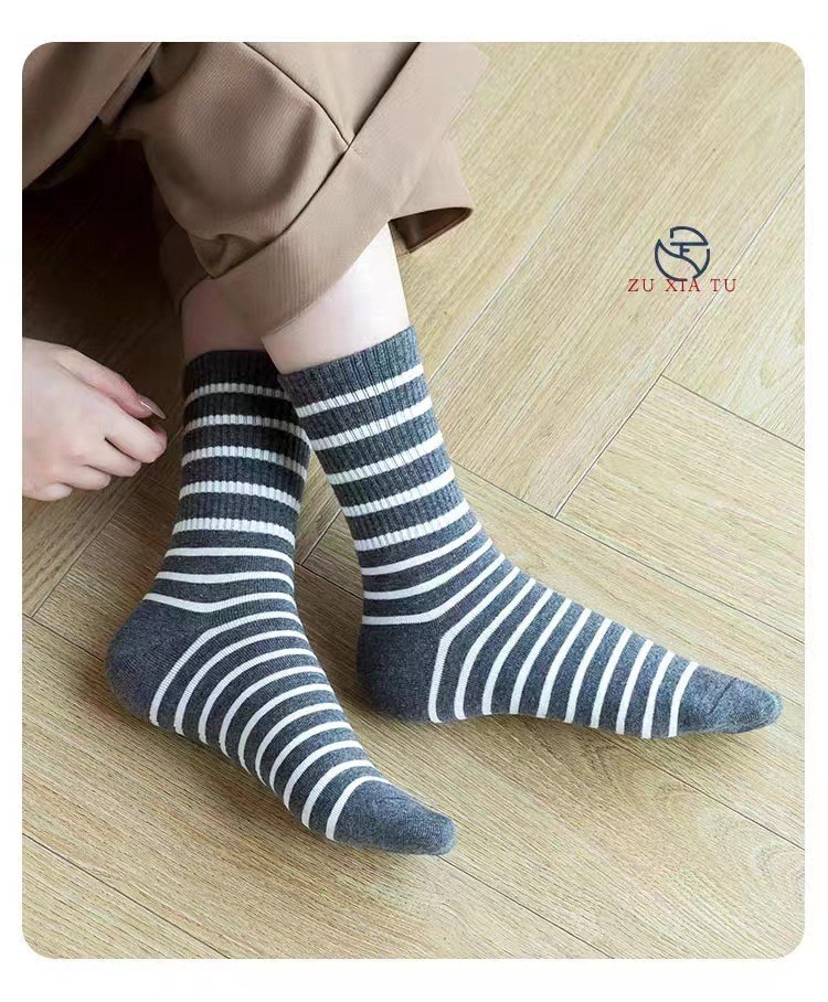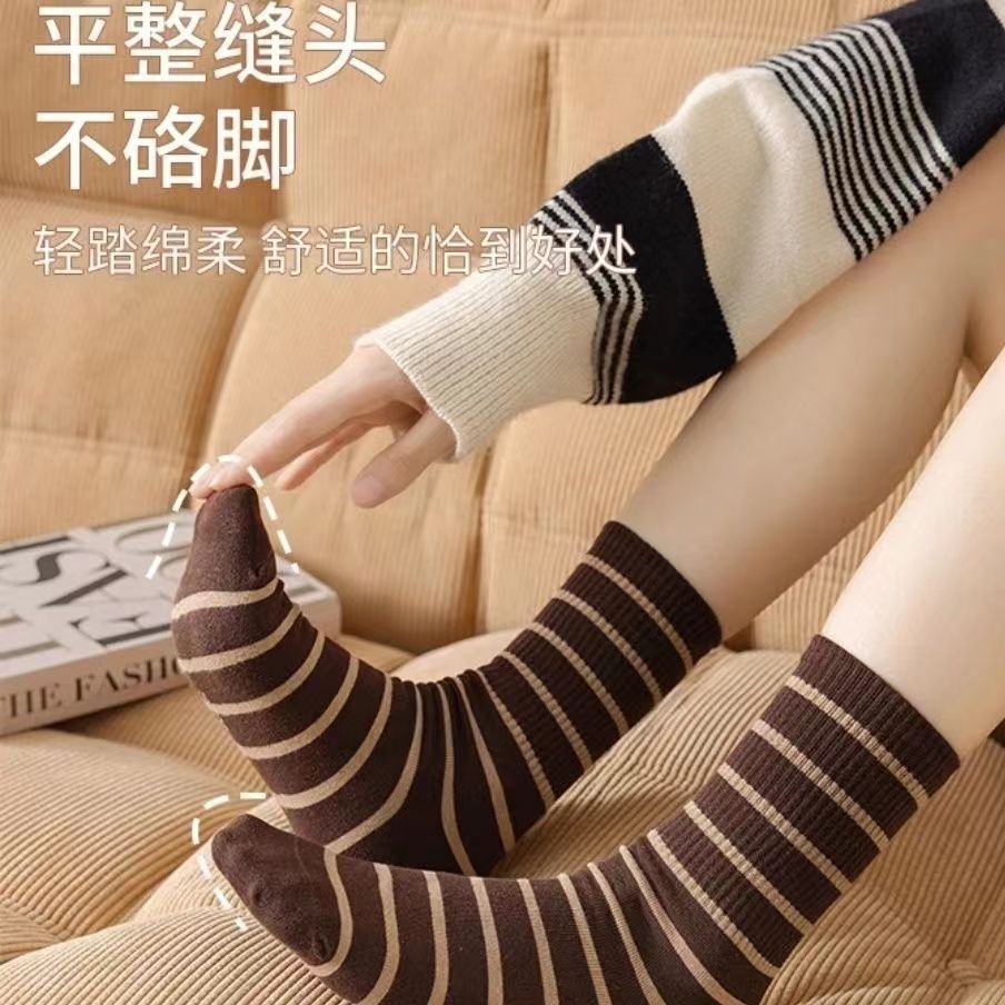 한국 스타일 새로운 스트라이프 중간 길이 스타킹 가을과 겨울 높은 스타킹 일본 스타일 여성 스타킹 다크 브라운 유행 모든 매치 양말스토어 가기