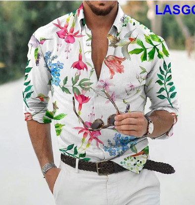 유럽과 미국의 새로운 크로스보더 대형 남성복 꽃무늬 셔츠 쿠바 칼라 남성 비치 셔츠 3D 프린트 라펠 도매스토어 가기