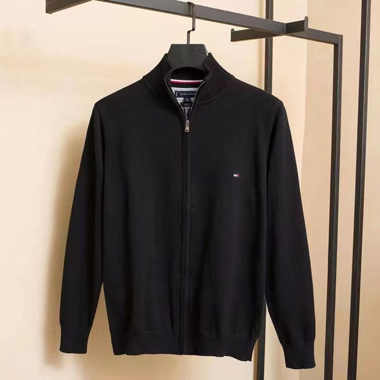 재고 대외 무역 23 가을과 겨울 토미 남성 가디건 터틀넥 자수 지퍼 니트웨어 스웨터 코트 1