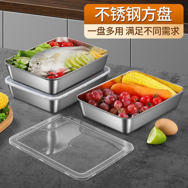스테인레스 스틸 크리스퍼 타월 트레이 사각 조미료 상자 뚜껑이 있는 두꺼운 사각형 트레이 생 절인 야채 트레이 찜 트레이 베이킹 트레이스토어 가기