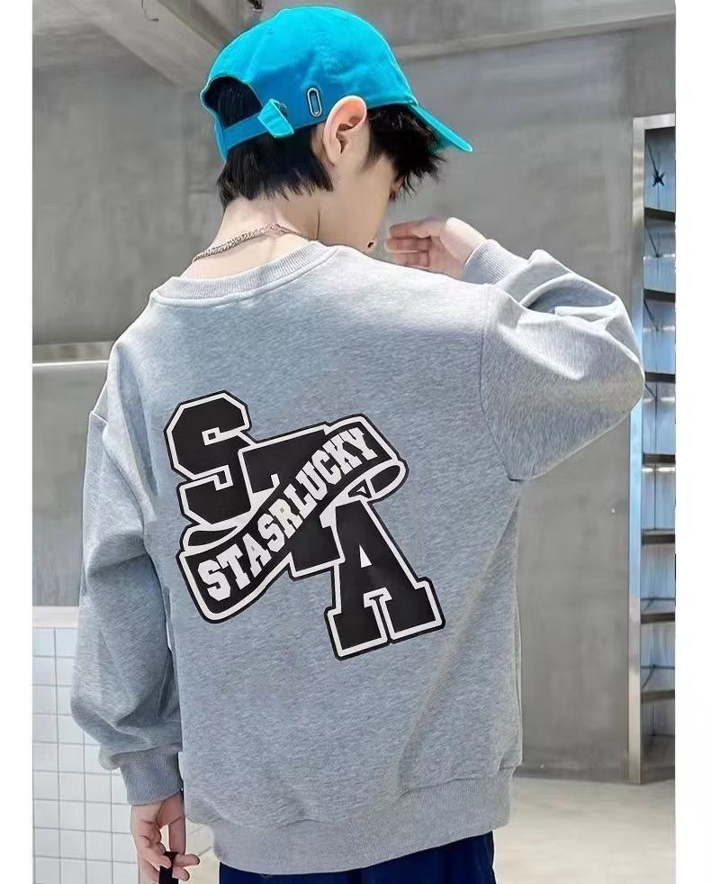 소년 스웨터 봄과 가을 2023 새로운 어린이 긴 소매 기본 셔츠 서양 스타일 중간 및 큰 어린이 스웨터 캐주얼 탑 트렌디