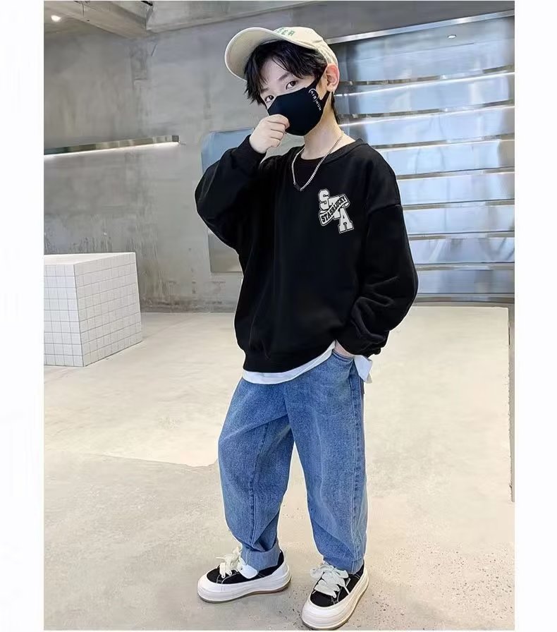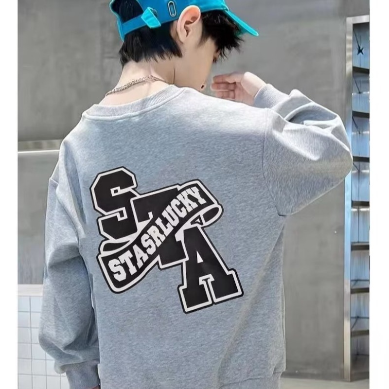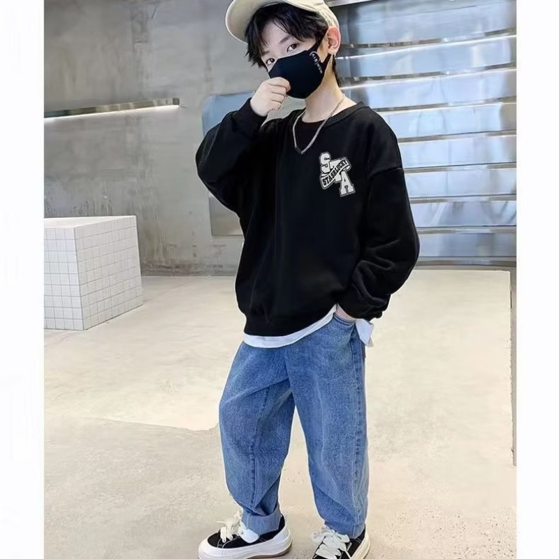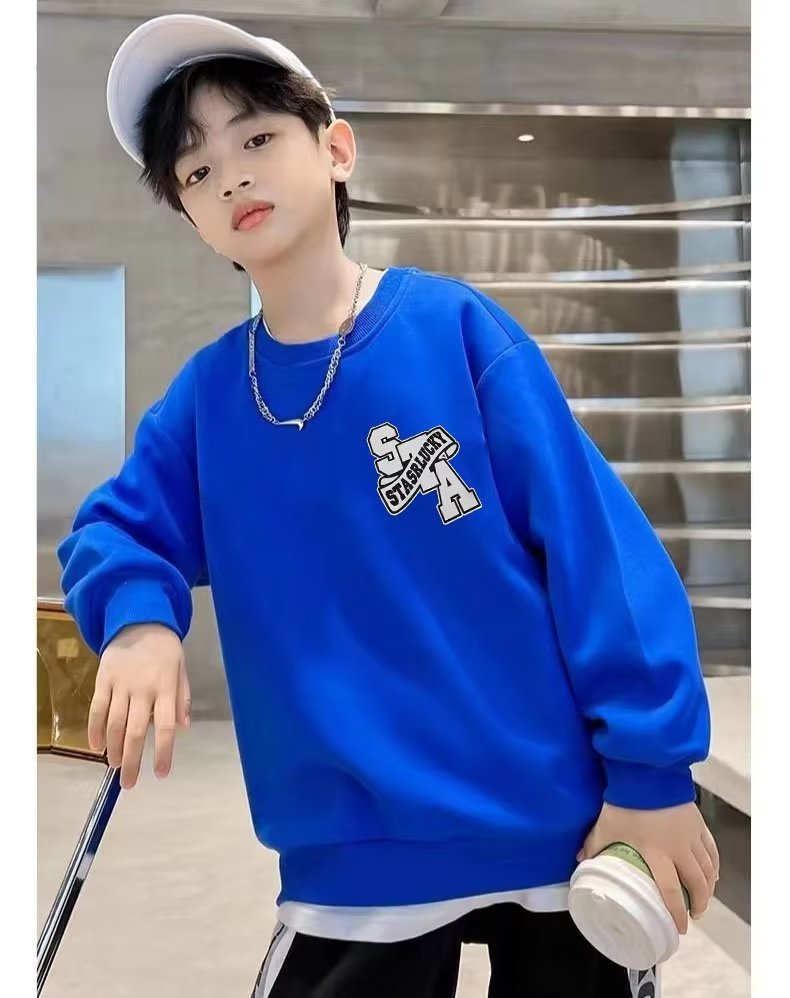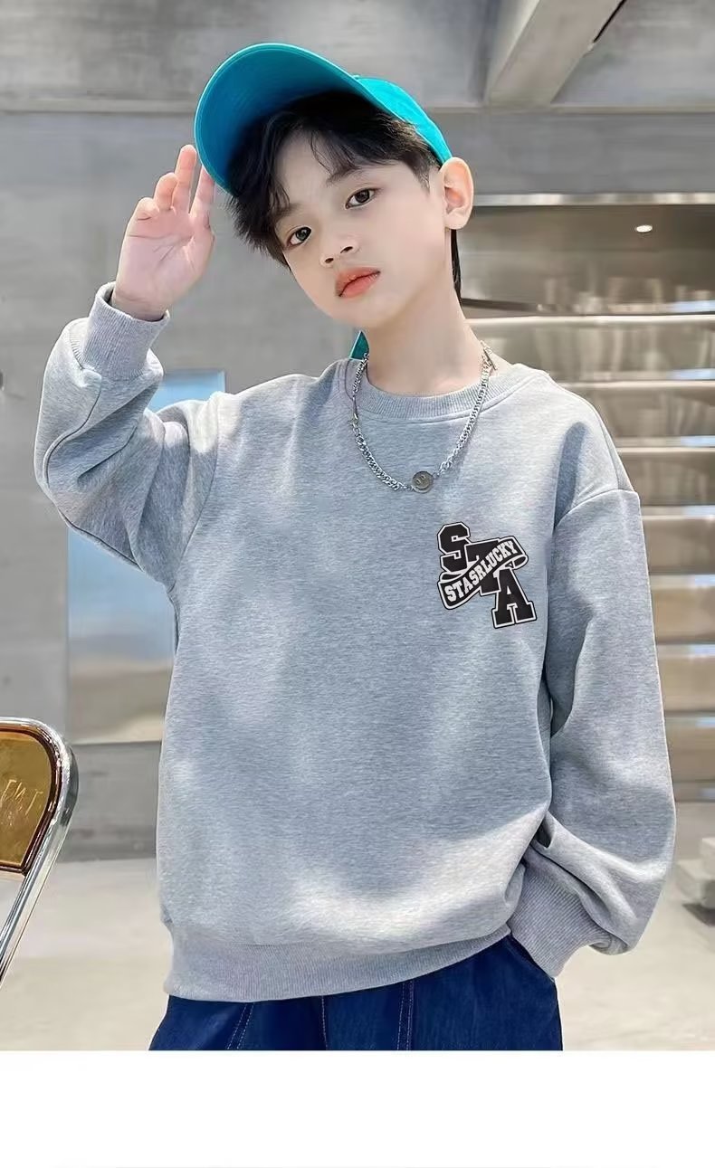 소년 스웨터 봄과 가을 2023 새로운 어린이 긴 소매 기본 셔츠 서양 스타일 중간 및 큰 어린이 스웨터 캐주얼 탑 트렌디스토어 가기