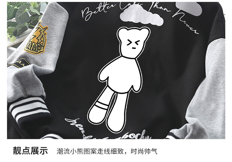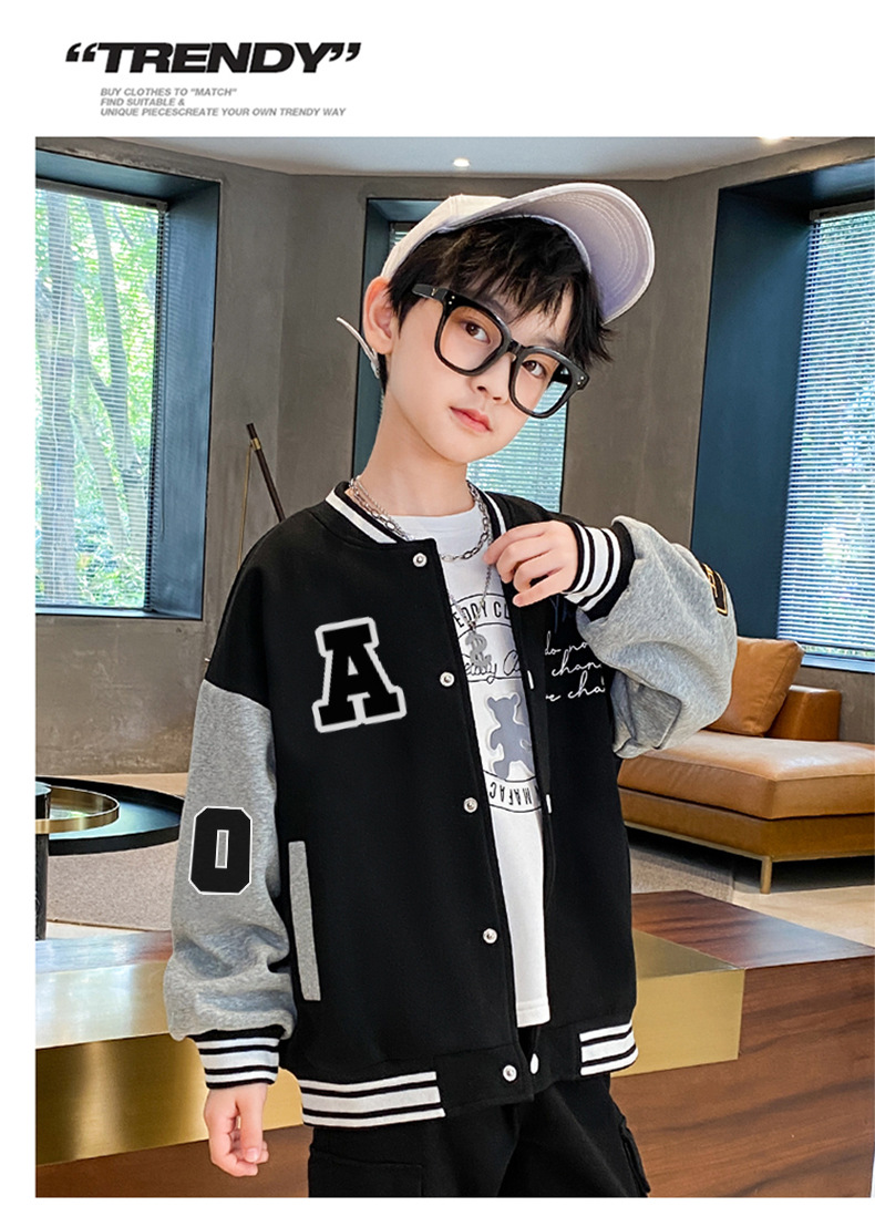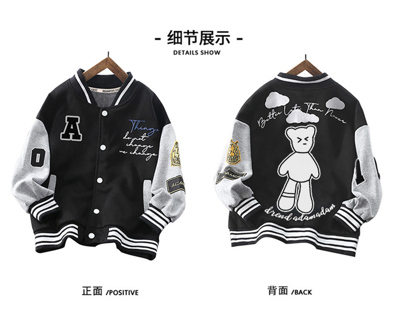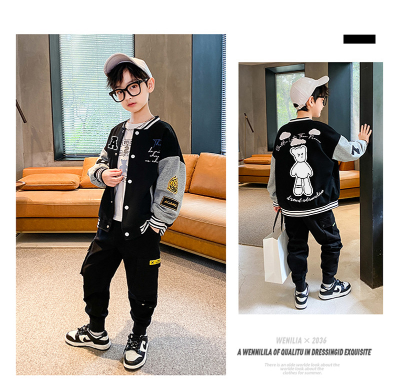 봄과 가을 어린이 패션 유행 멋진 알파벳 곰 야구 세트 소년 학생 대학 스타일 버튼 카디건 캐주얼 재킷