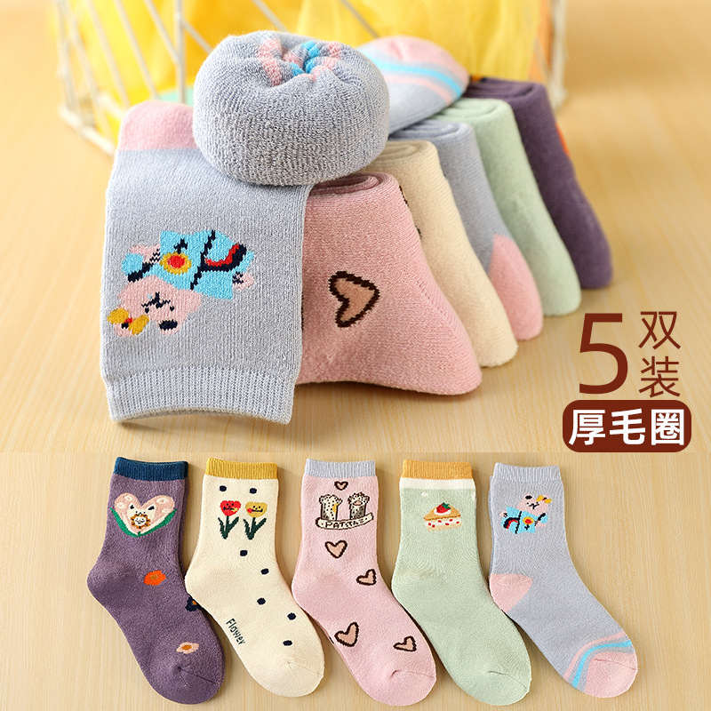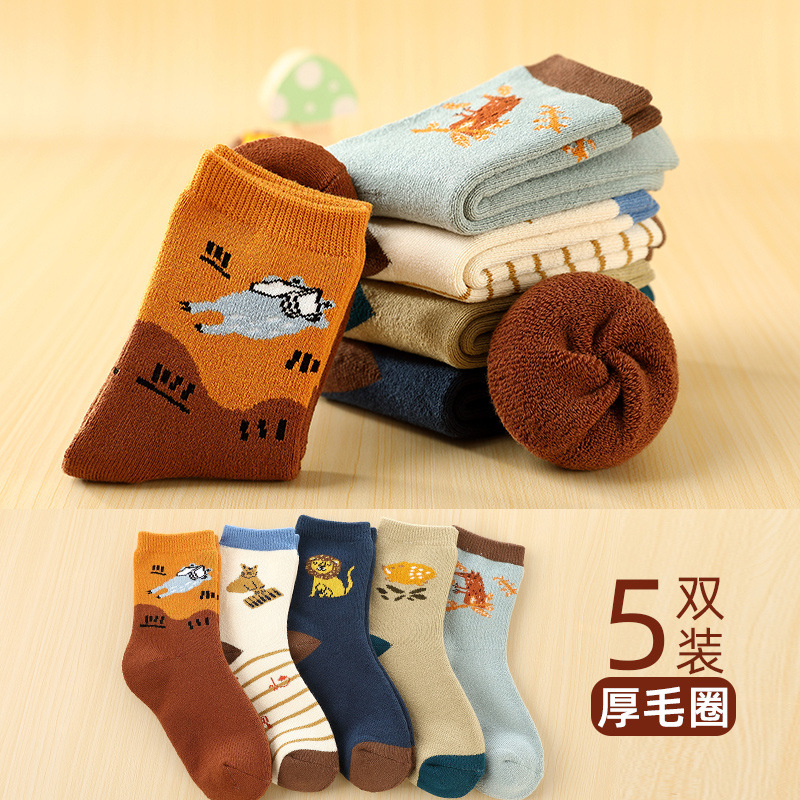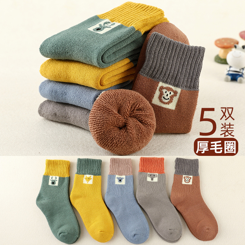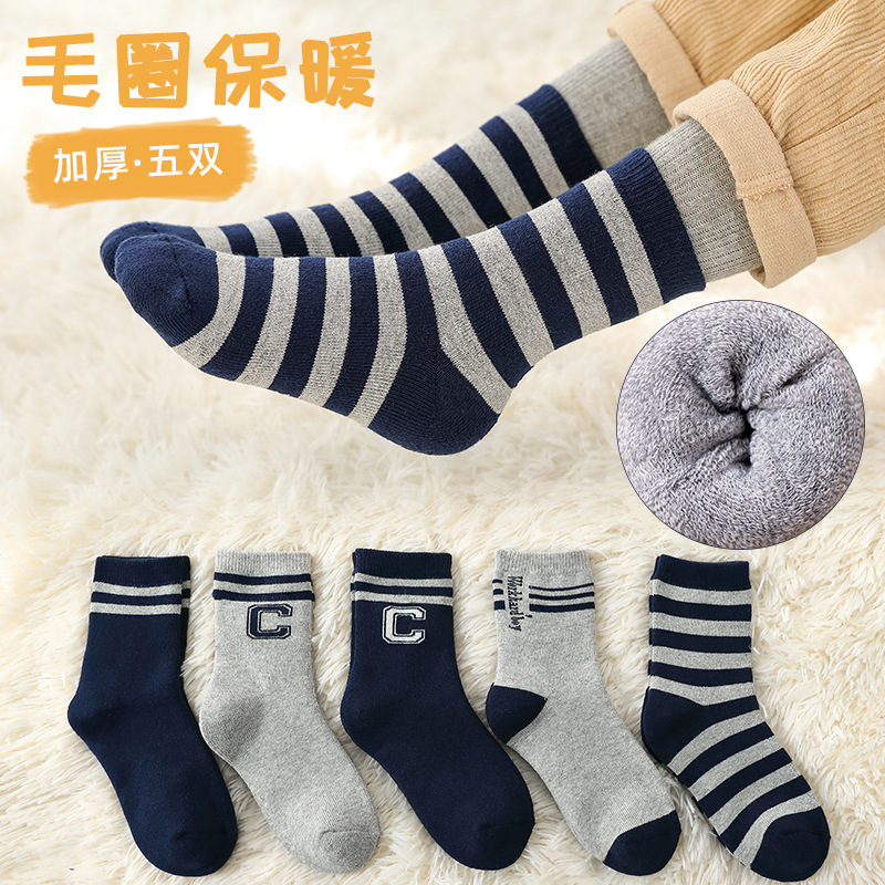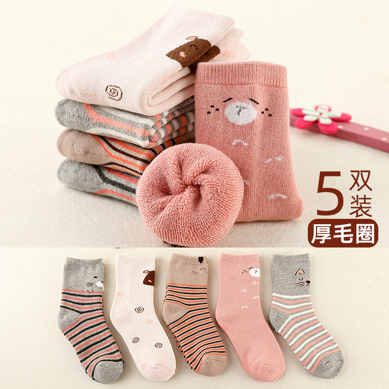 어린이 양말 소년 가을과 겨울 두꺼운 테리 양말 소년과 소녀 겨울면과 벨벳 튜브 양말 아기 스타킹