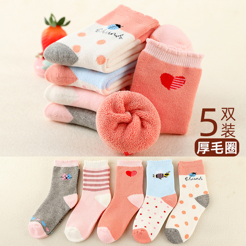 어린이 양말 소년 가을과 겨울 두꺼운 테리 양말 소년과 소녀 겨울면과 벨벳 튜브 양말 아기 스타킹스토어 가기