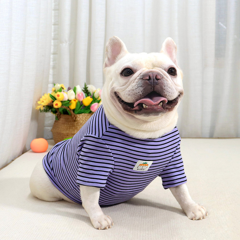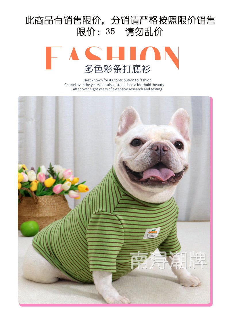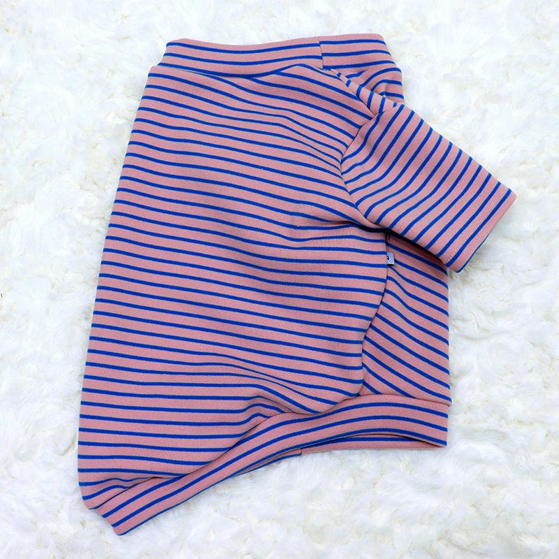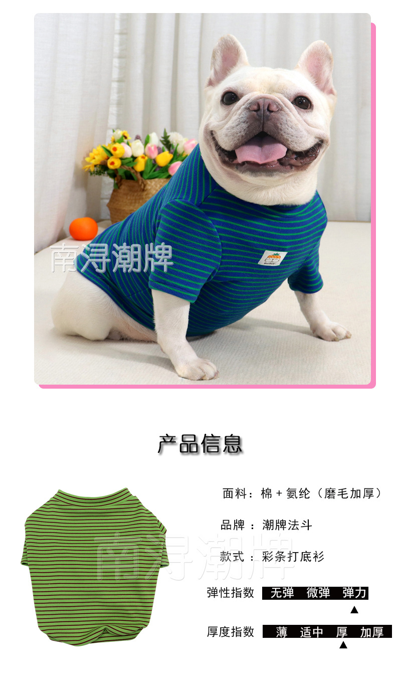개 슈퍼 탄성베이스 셔츠 컬러 스트라이프 가을과 겨울 샌딩 두꺼운 패브릭 스트레치 스트라이프 뚱뚱한 개 옷스토어 가기