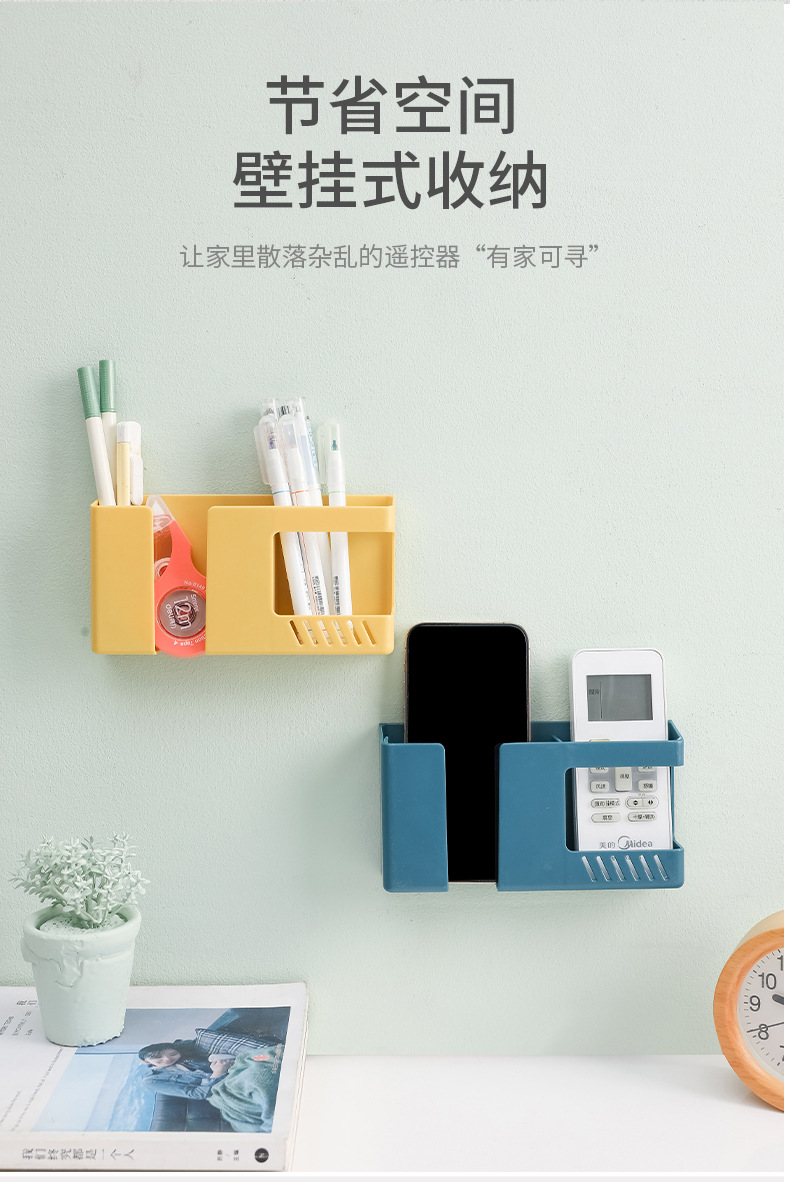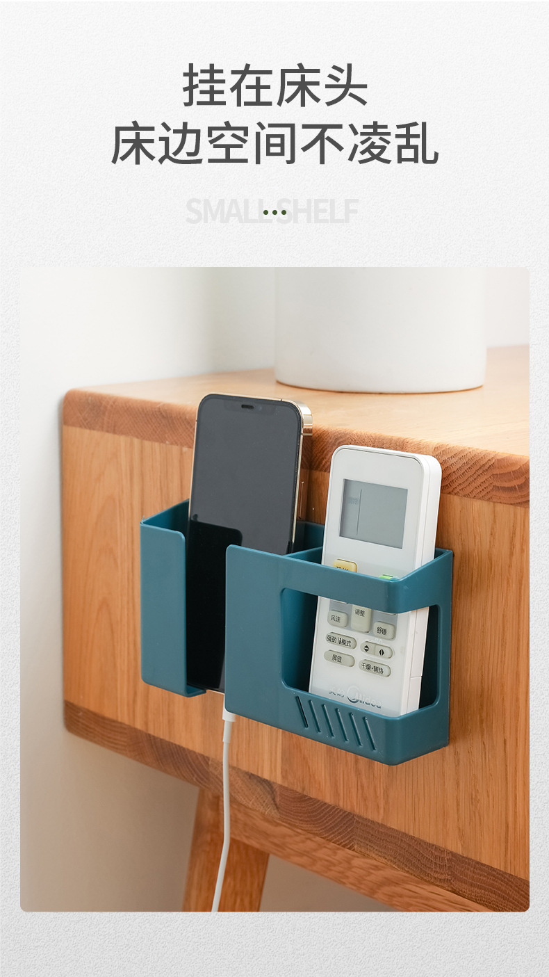이중 칸막이 벽걸이 수납함 침대 옆 휴대폰 충전 브래킷 홈 리모컨 TV 에어컨 리모컨 보관함스토어 가기