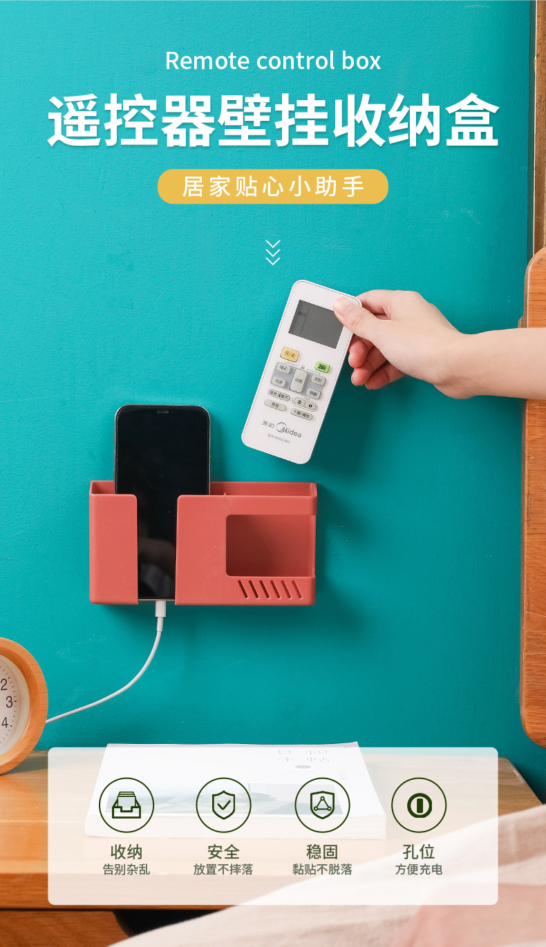 이중 칸막이 벽걸이 수납함 침대 옆 휴대폰 충전 브래킷 홈 리모컨 TV 에어컨 리모컨 보관함