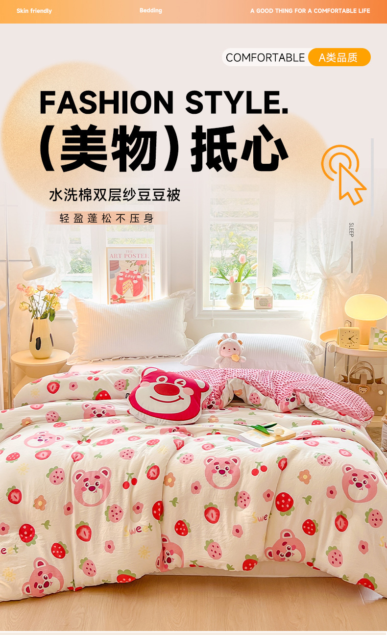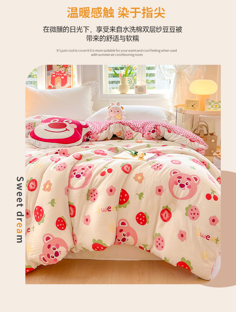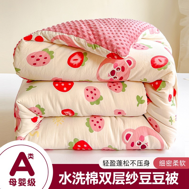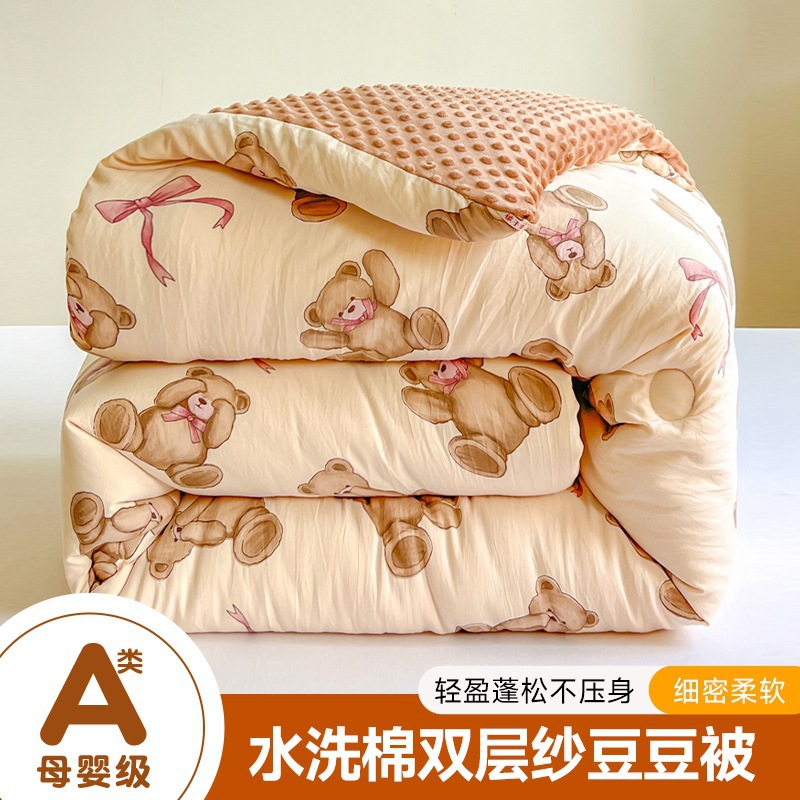 【인기 라이브 상품】신상 A급 콩털 이불 세탁 가능한 면 이중 거즈 봄 가을 겨울용 친피부 플러스 벨벳 이불심스토어 가기