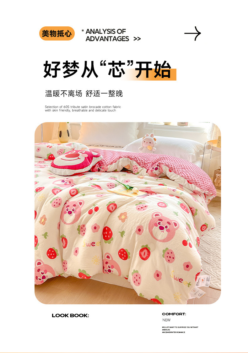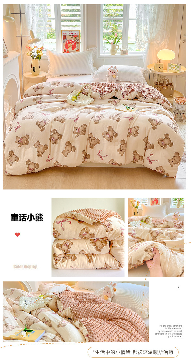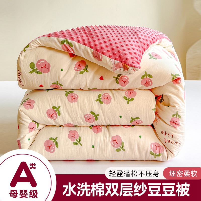 【인기 라이브 상품】신상 A급 콩털 이불 세탁 가능한 면 이중 거즈 봄 가을 겨울용 친피부 플러스 벨벳 이불심