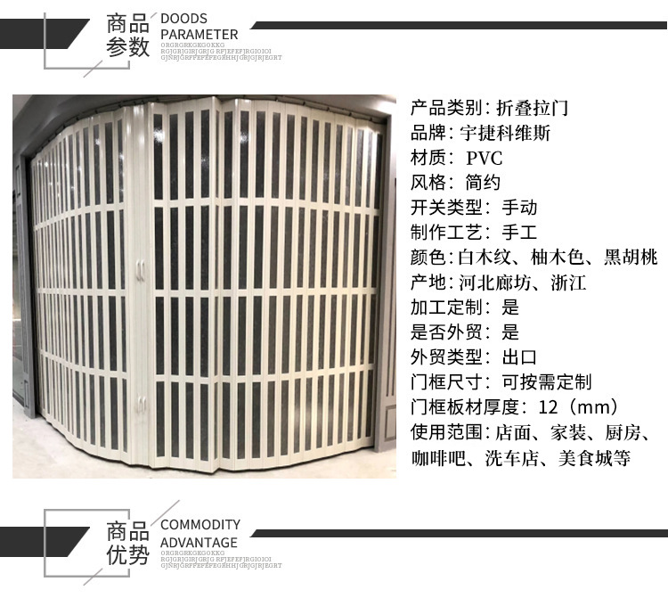 도매 맞춤형 친환경 PVC 접이식 도어, 펀치 없는 가스 수용 칸막이 도어, 주방 상점 루버 슬라이딩 도어스토어 가기