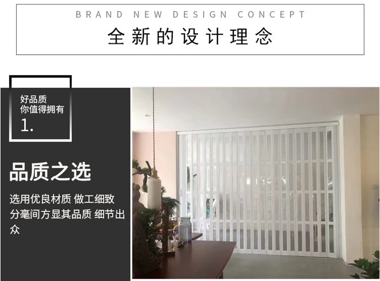 도매 맞춤형 친환경 PVC 접이식 도어, 펀치 없는 가스 수용 칸막이 도어, 주방 상점 루버 슬라이딩 도어