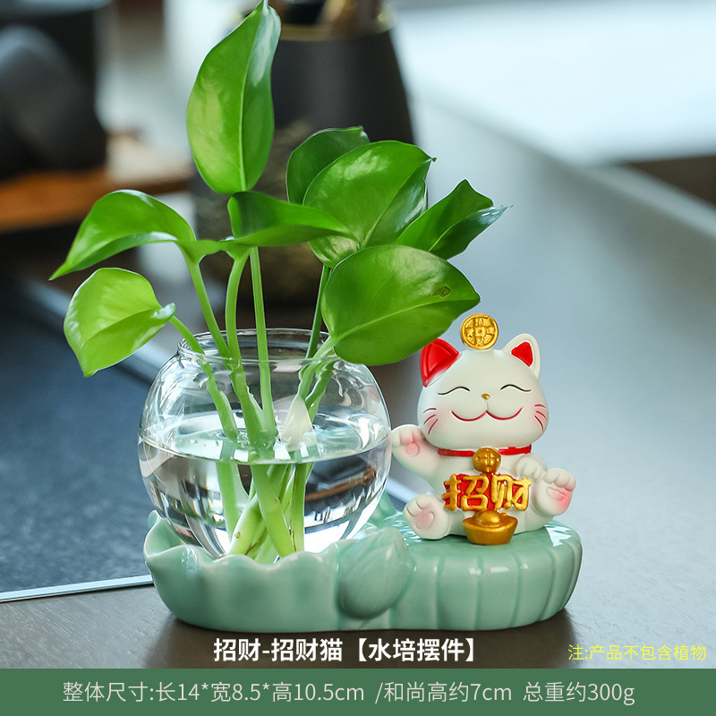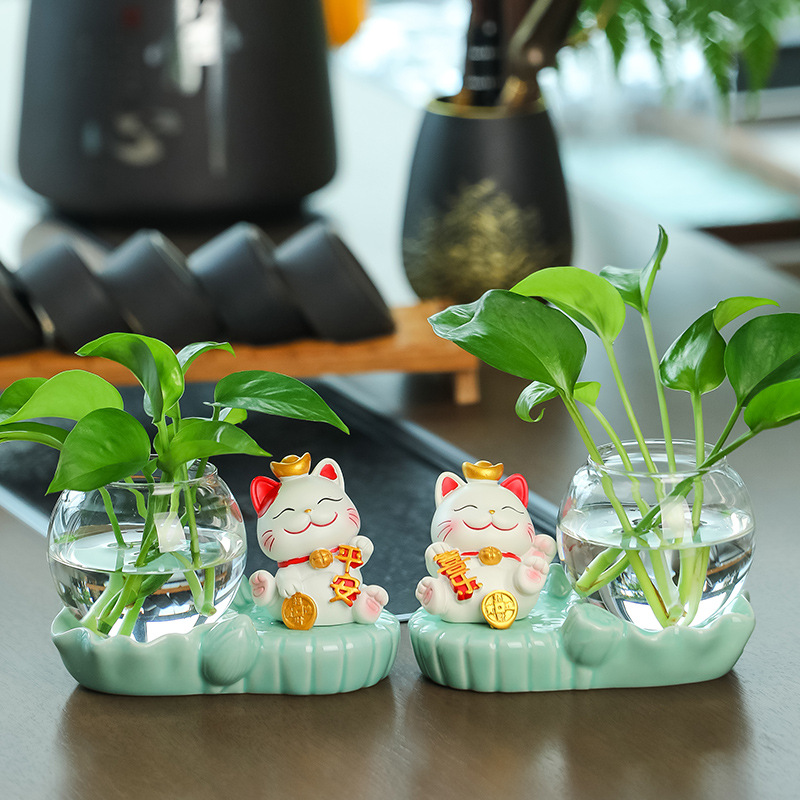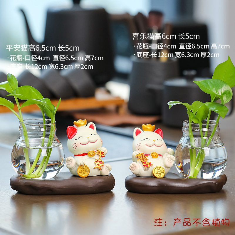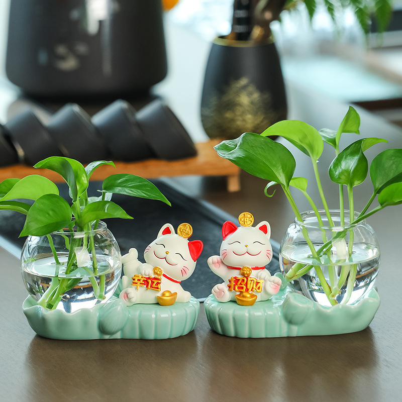 귀여운 럭키 고양이 수경 꽃병 데스크탑 장식 거실 입구 데스크 장식 크리 에이 티브 그린 로즈 아쿠아 꽃 올리기