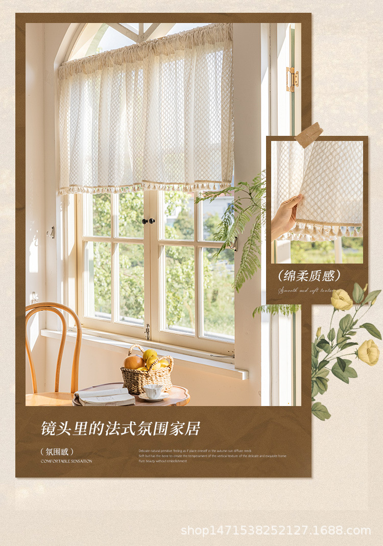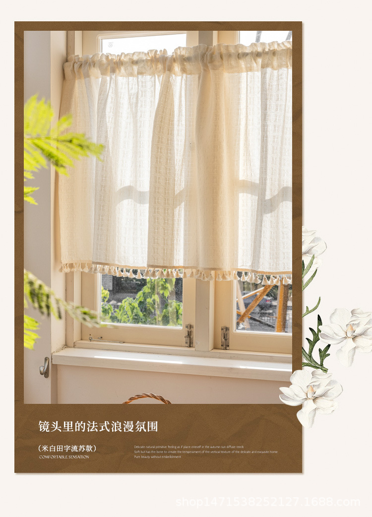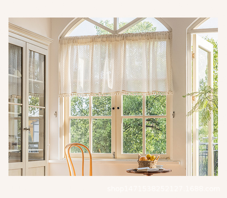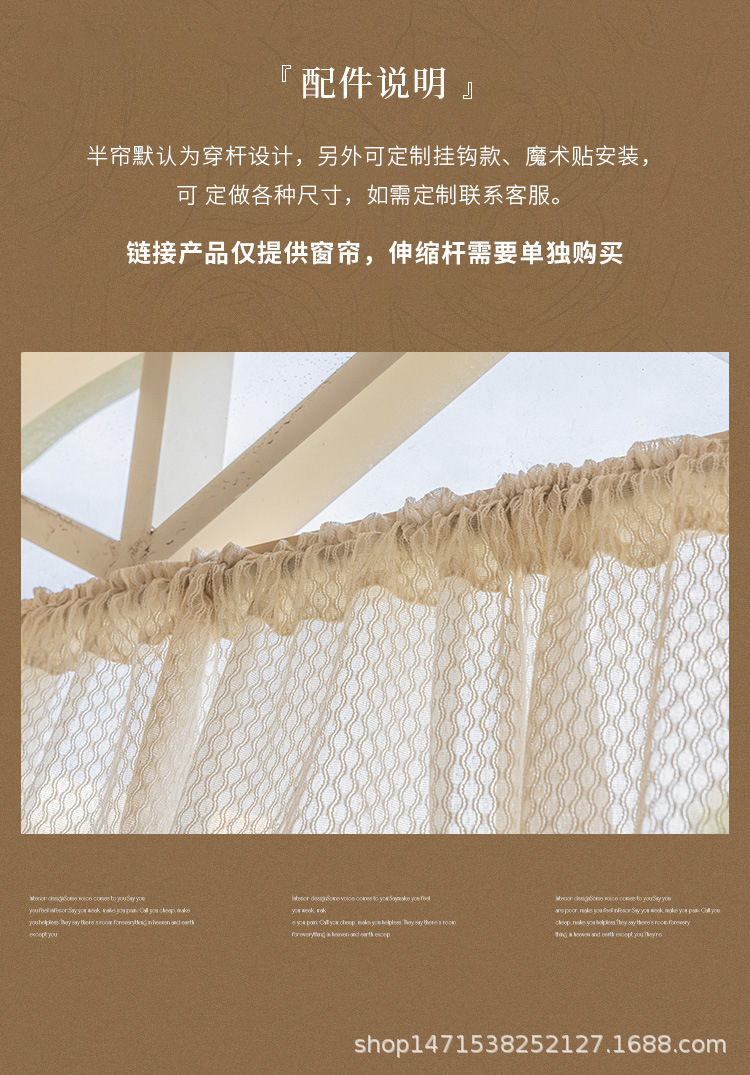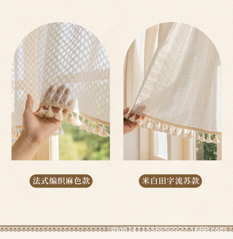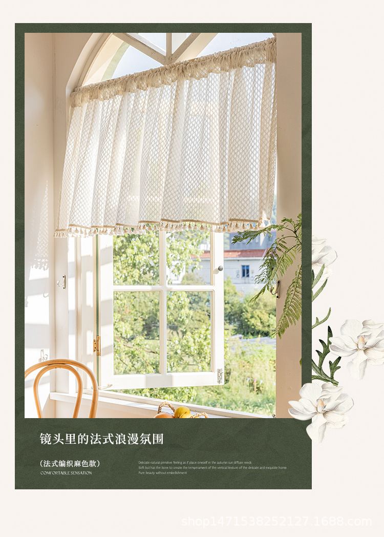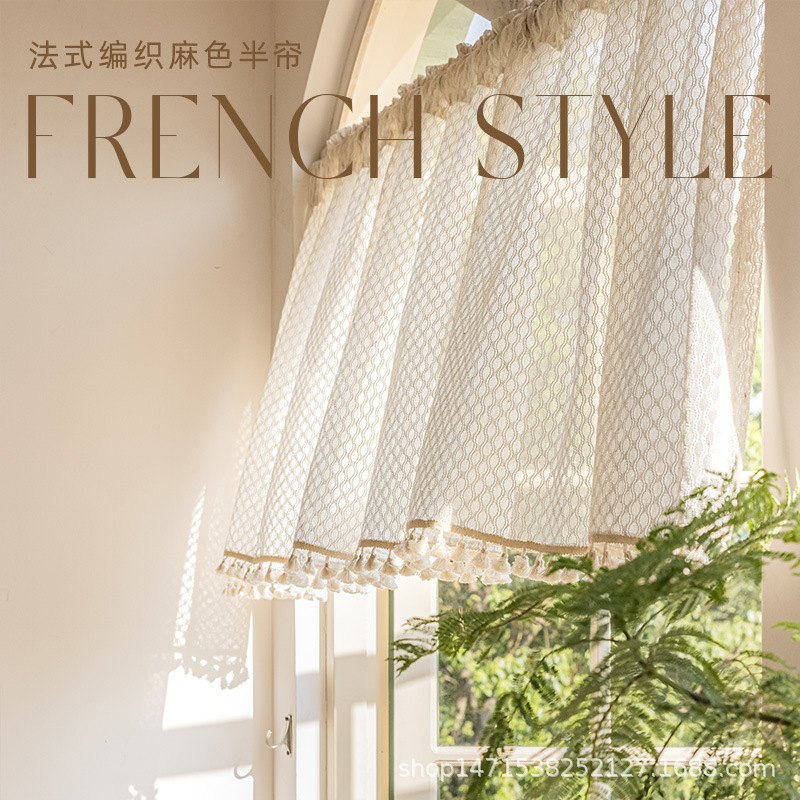 프랑스 레이스 투명 스크린 커튼 창 장식 레트로 짠 질감 반 커튼 파티션 도어 커튼 격자 짧은 커튼 술