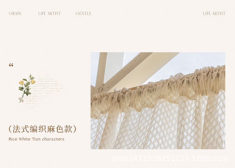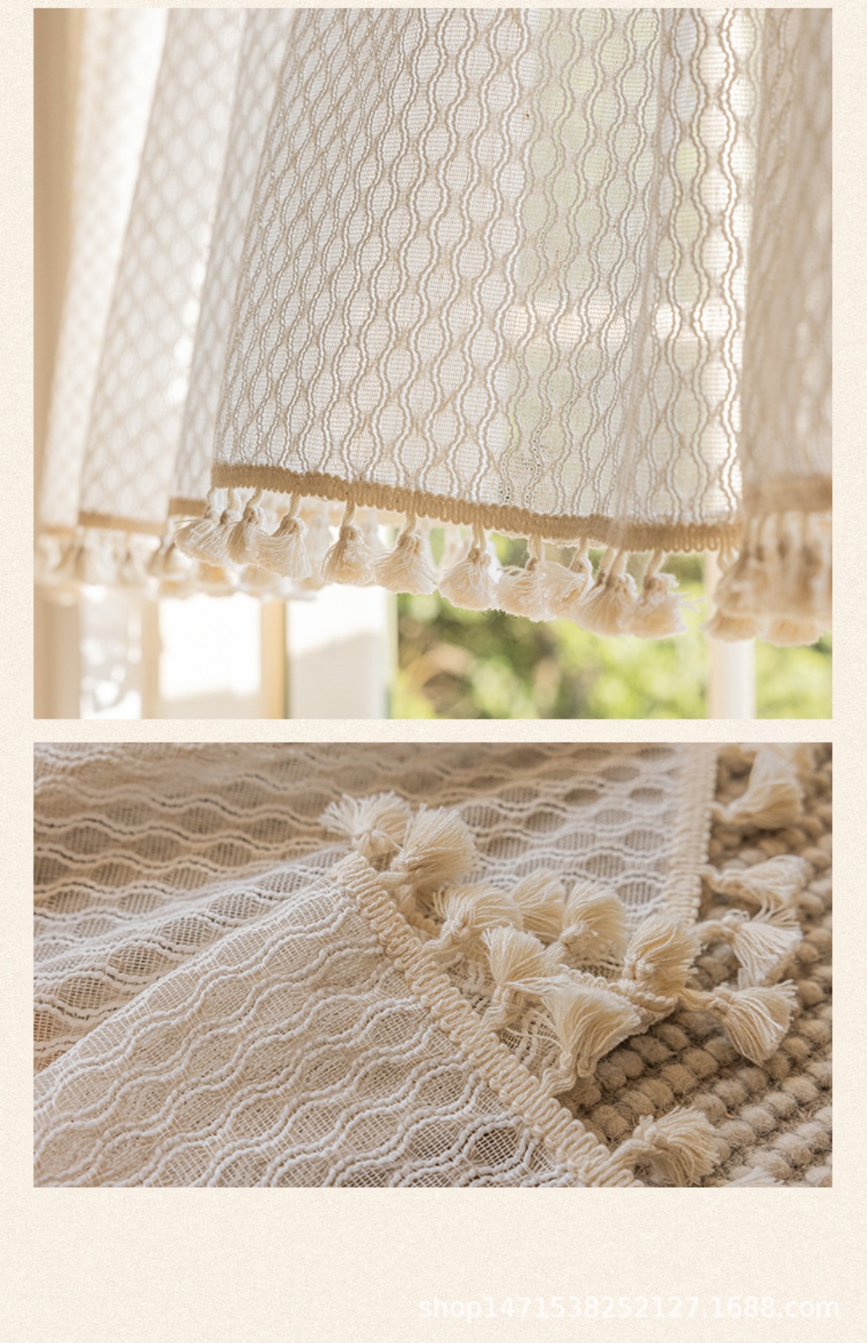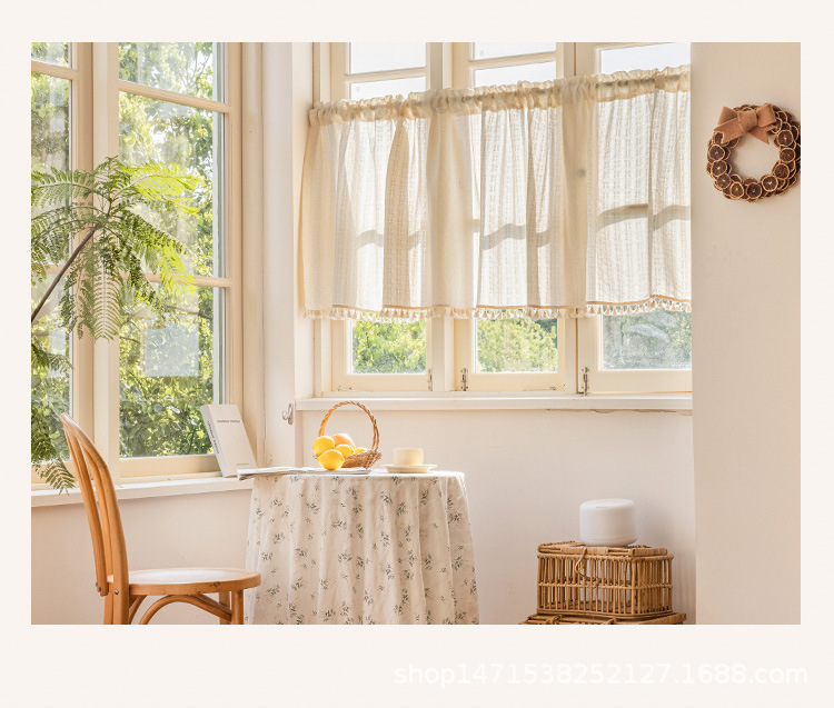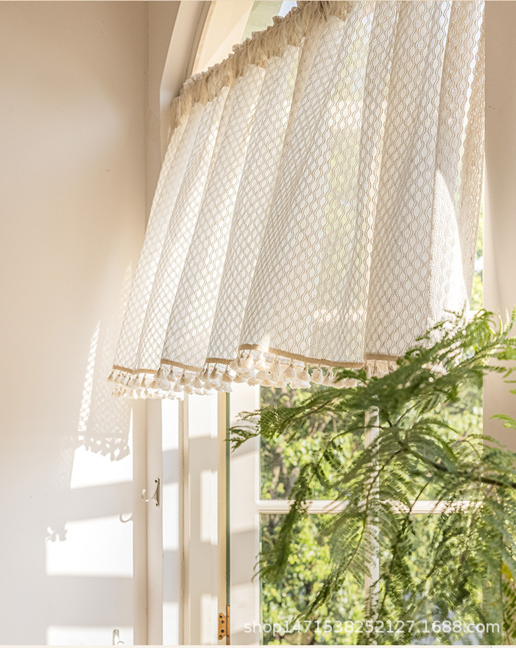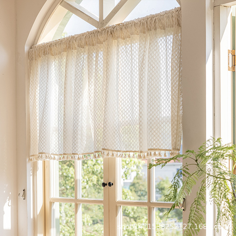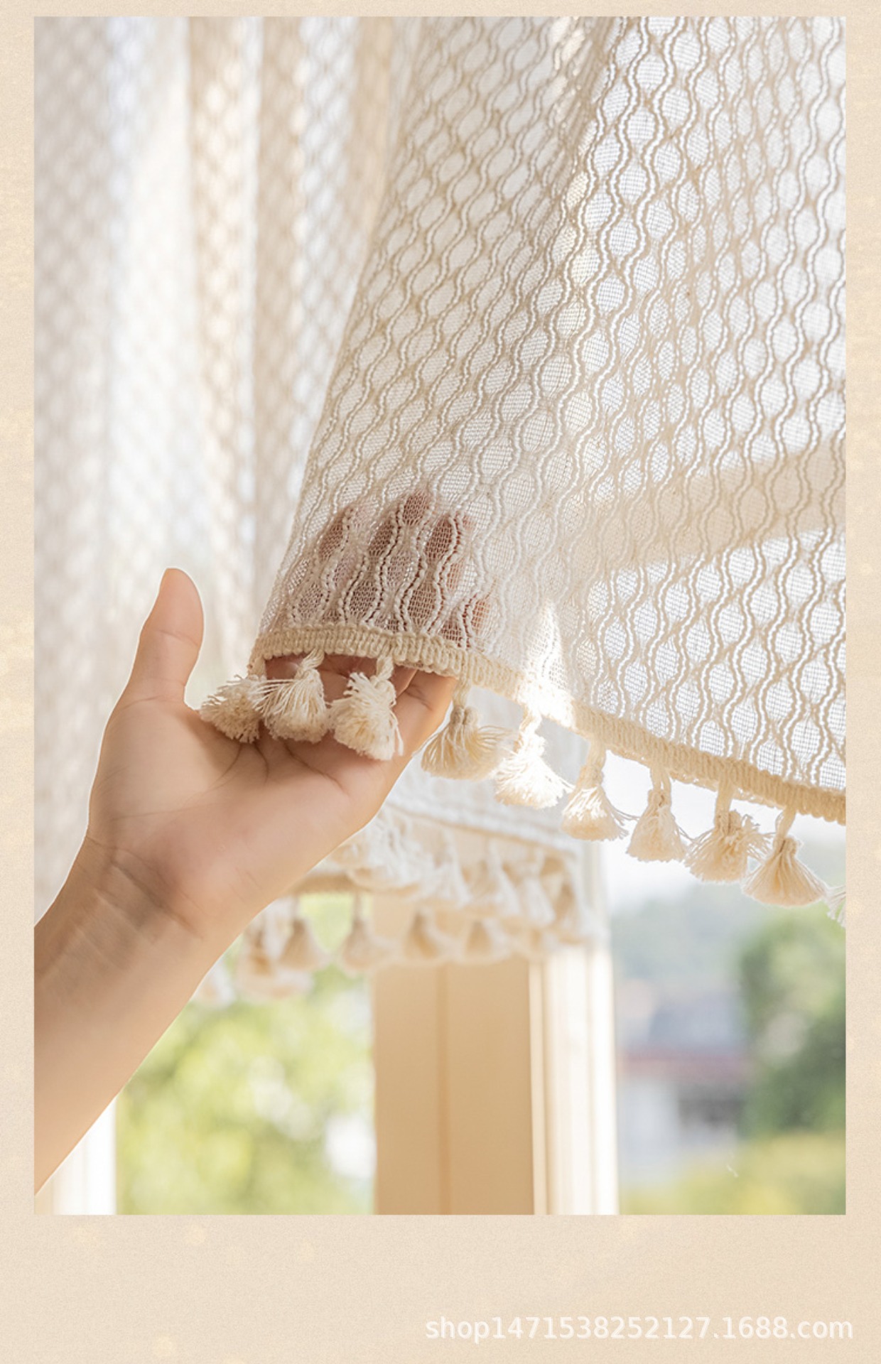 프랑스 레이스 투명 스크린 커튼 창 장식 레트로 짠 질감 반 커튼 파티션 도어 커튼 격자 짧은 커튼 술