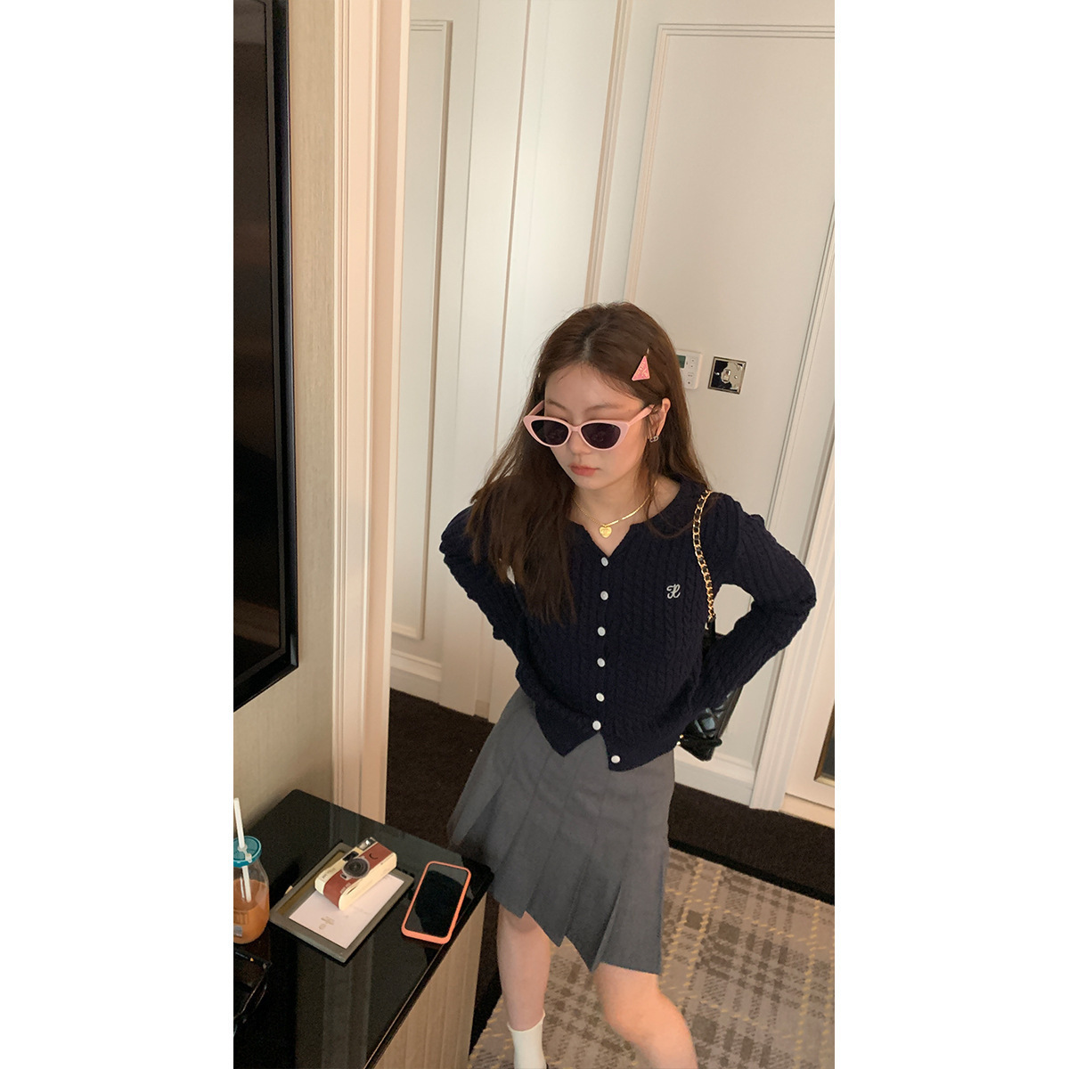 가을과 겨울 여러 가지 빛깔의 트위스트 스웨터 코트 게으른 패션 모든 매치 편지 자수 패션베이스 달콤하고 핫 가디건스토어 가기