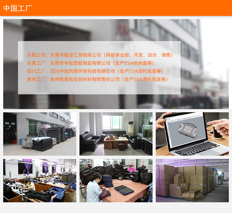 答:我们是EVA收纳盒、电子产品收纳包、EVA制品制造供应商。 中国有多家工厂外,在越南也有分厂。