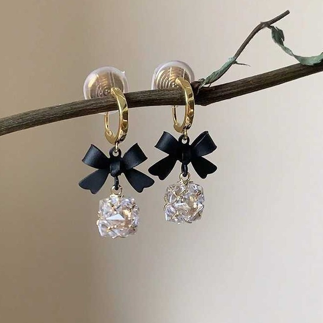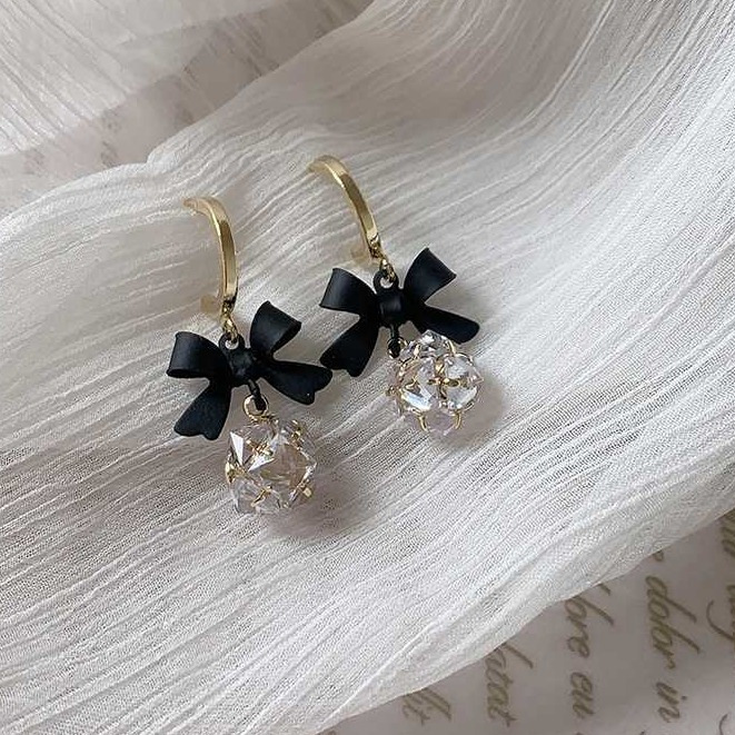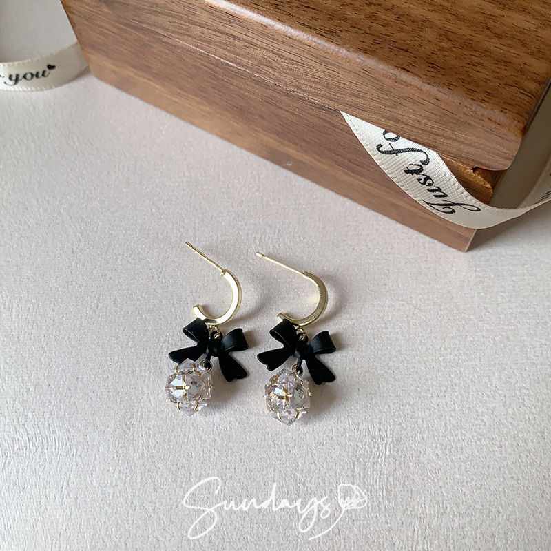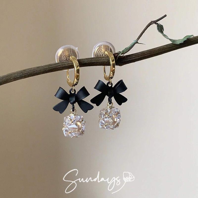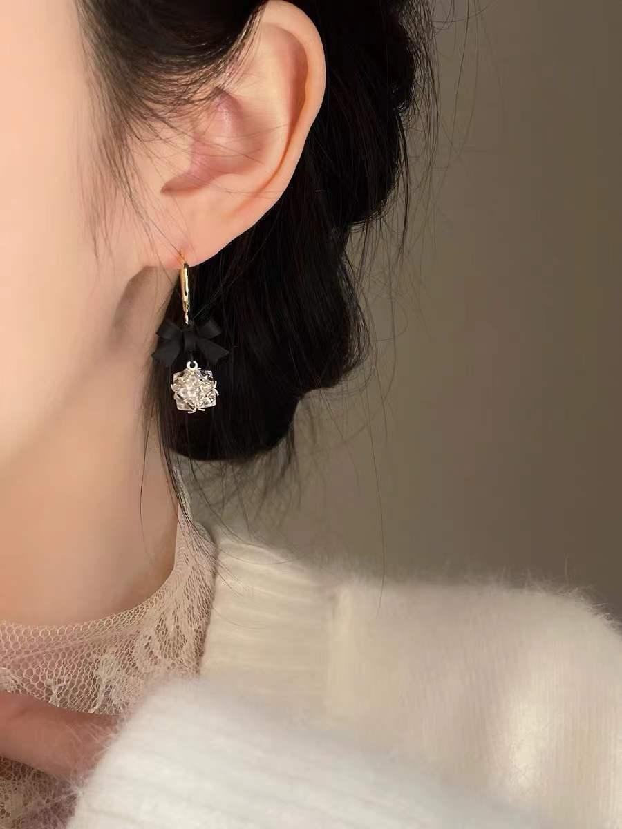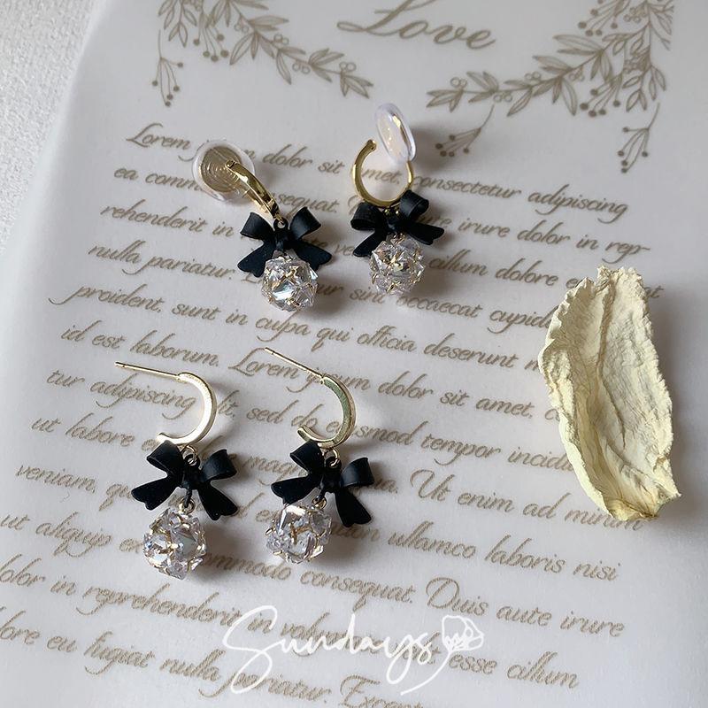 925 실버 바늘 ~ 블랙 보우 귀걸이 틈새 레트로 고급 모기 향 플레이트 이어 클립 귀 구멍이없는 여성의 귀스토어 가기