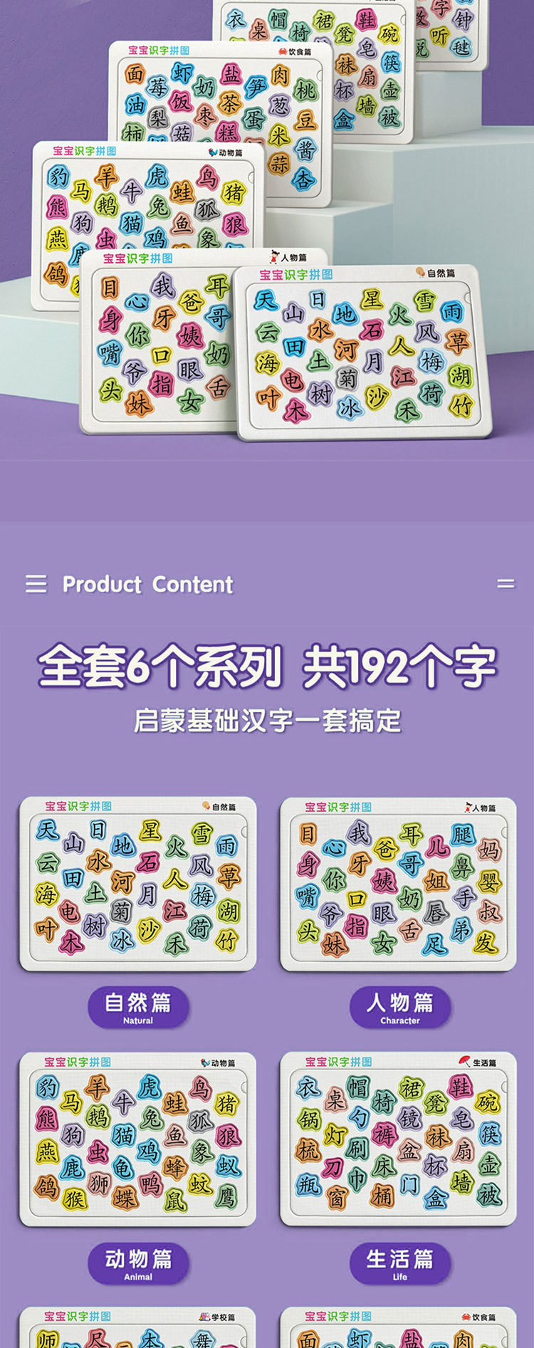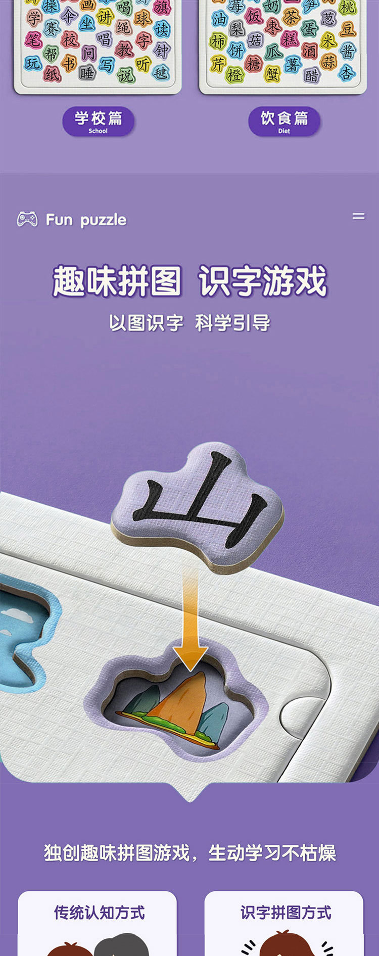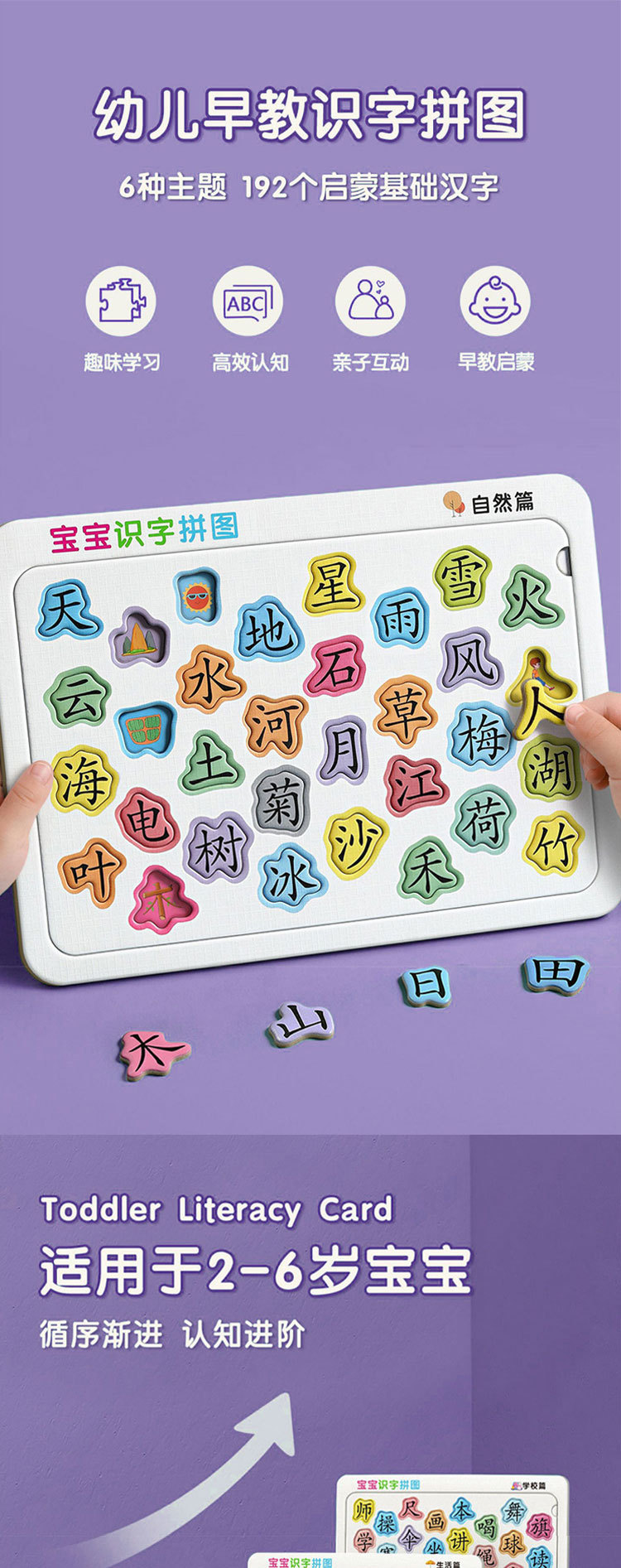 유아 조기교육 문해 퍼즐 한자 인식 카드 3-4세에서 6세 어린이 계몽 퍼즐 보드 교육용스토어 가기