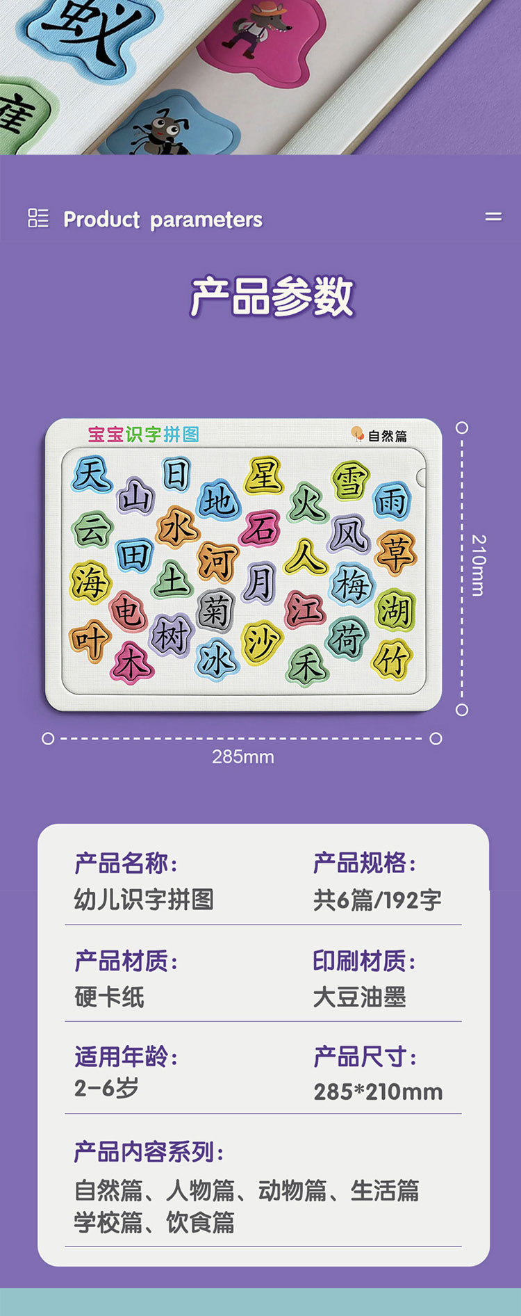 유아 조기교육 문해 퍼즐 한자 인식 카드 3-4세에서 6세 어린이 계몽 퍼즐 보드 교육용