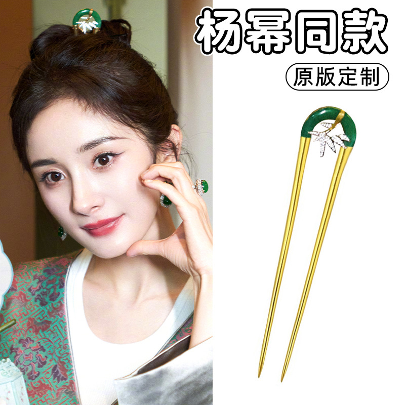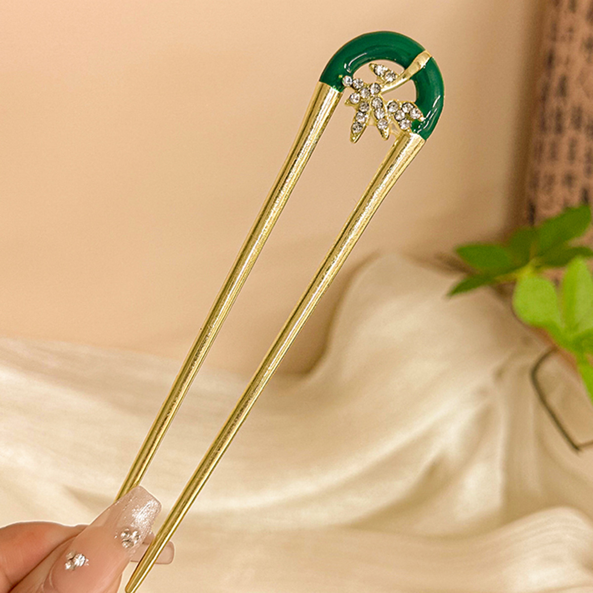 미니 양 같은 스타일 대나무 잎 머리핀 골동품 스타일 새로운 중국 U 자형 모자 치파오 액세서리 고급 감각 가스 녹색 헤어 액세서리 New