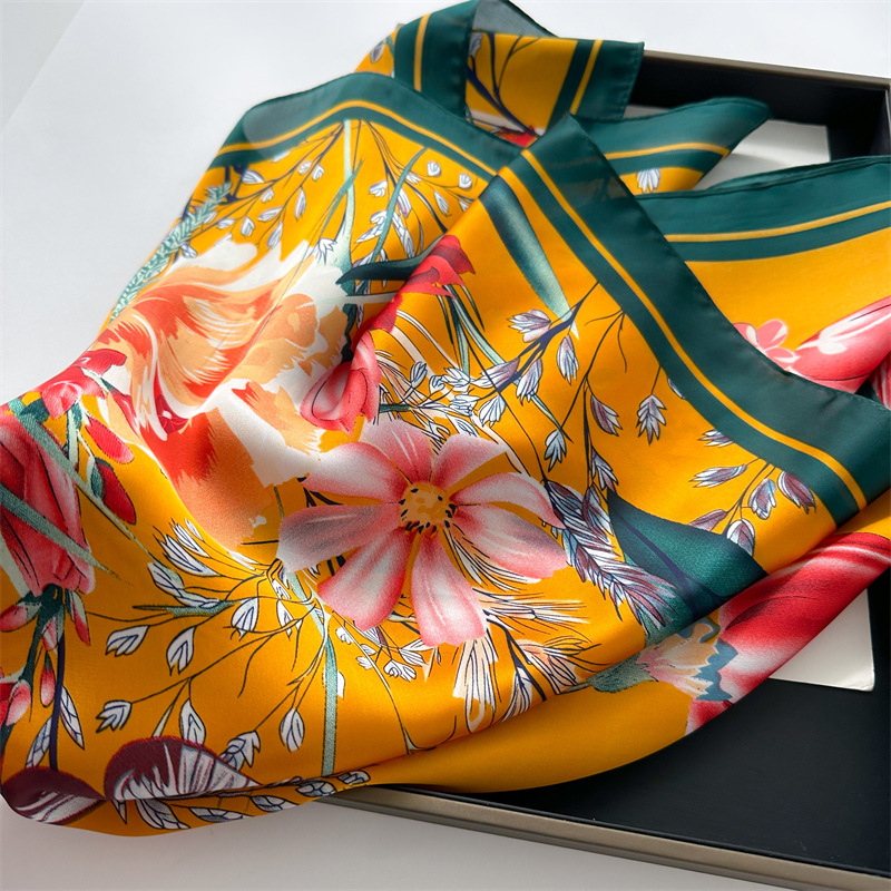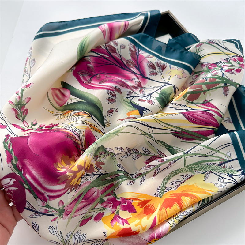 새로운 튤립 프린트 스카프 꽃 모조 실크 70 작은 사각 스카프 봄과 가을 모든 매치 스카프 넥타이 헤어 타이 터번스토어 가기