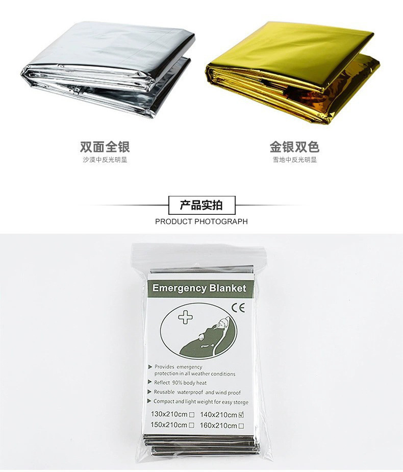 야외 비상 방수 열 보존 담요 따뜻한 주석 종이 비상 장비 생존 비상 양면 담요 따뜻한 절연 담요