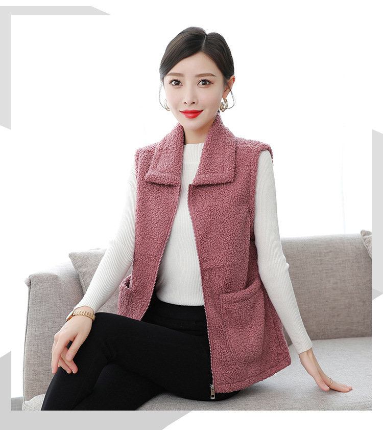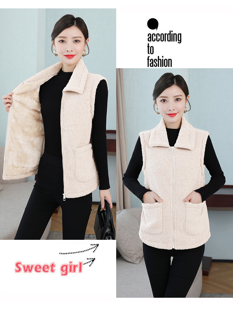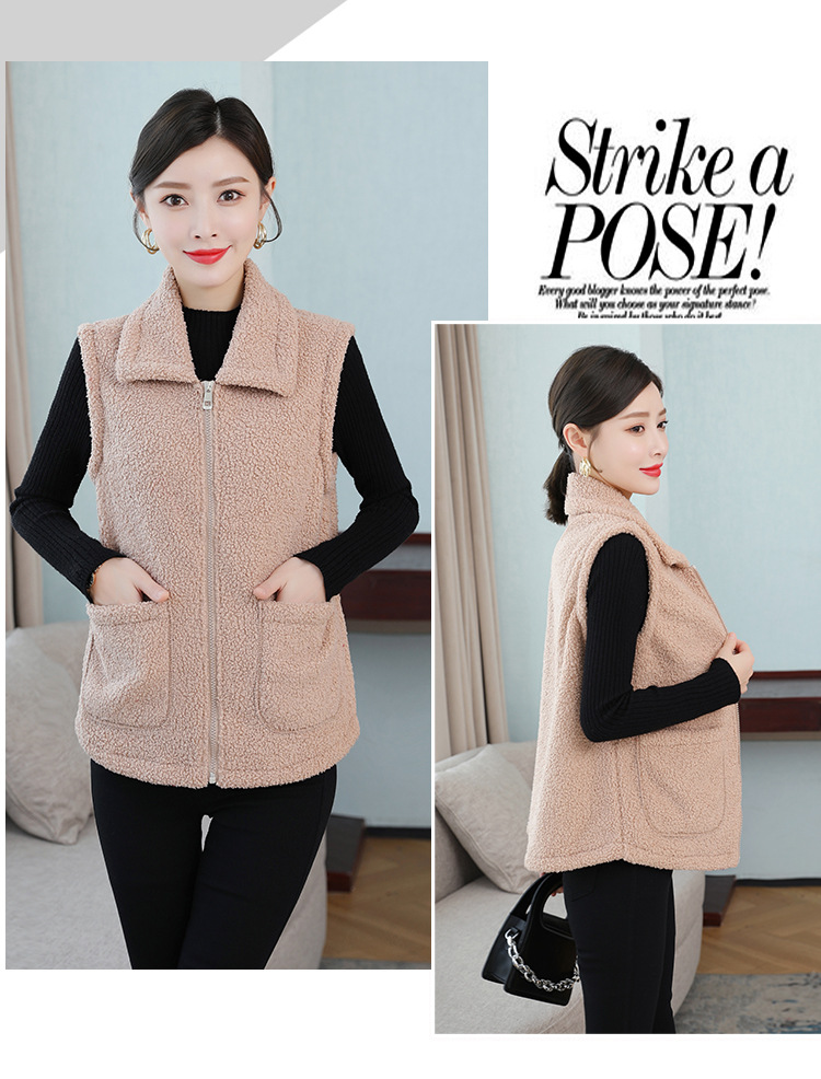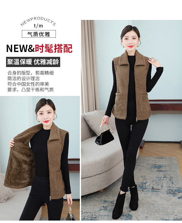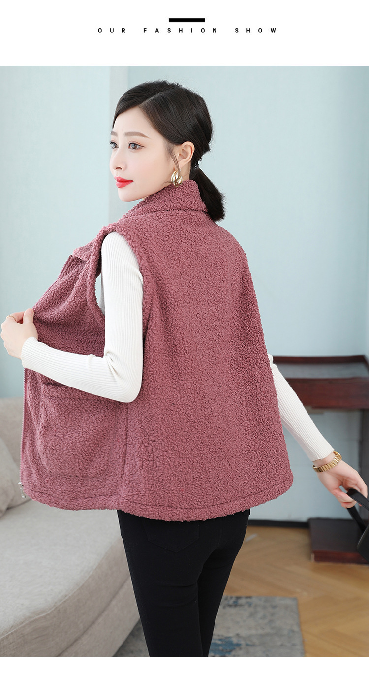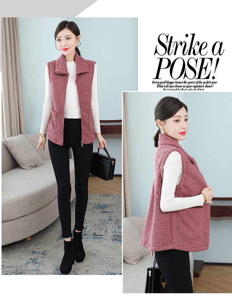 Lambswool 조끼 여성의 짧은 가을 및 겨울 겉옷 스탠드 칼라 기모 두꺼운 중년 및 노인 양복 조끼 착용스토어 가기