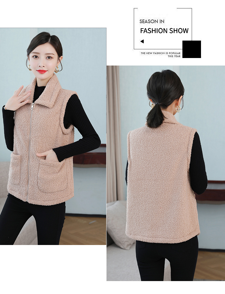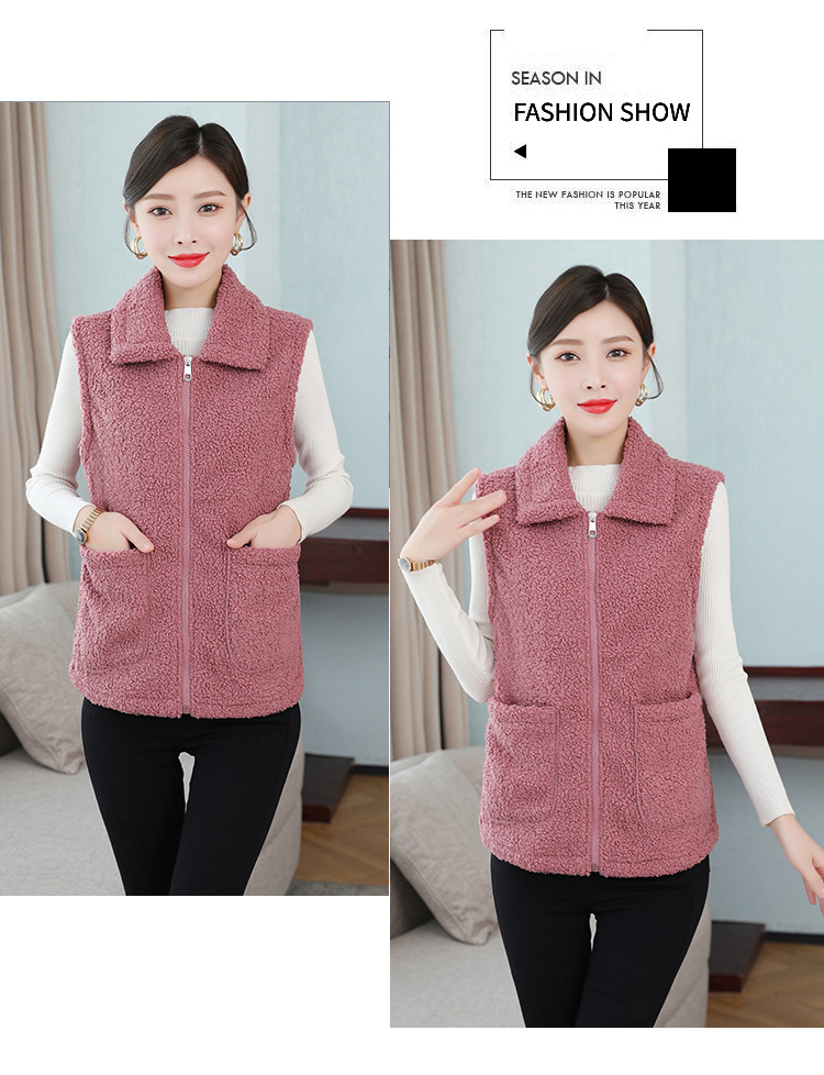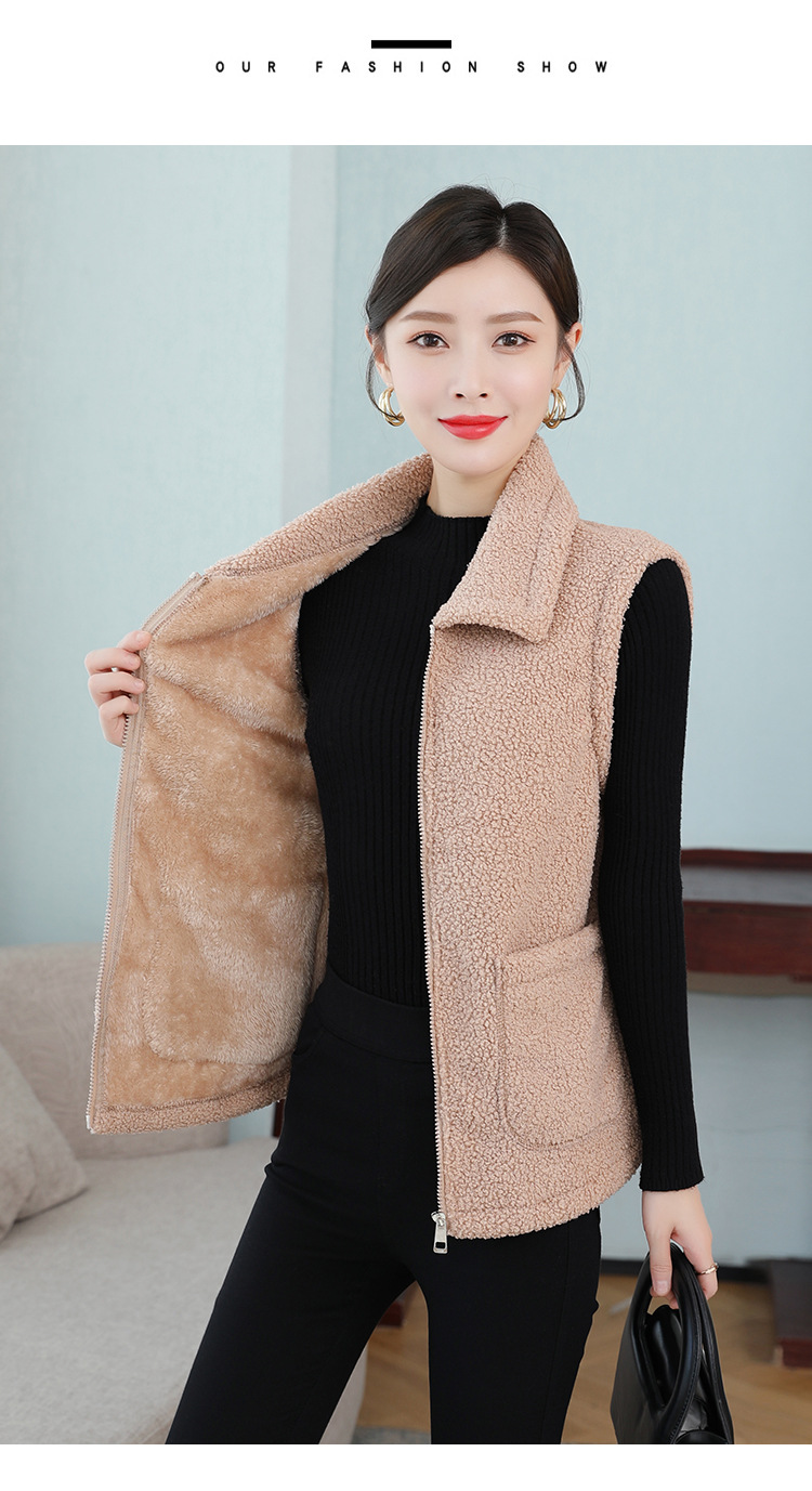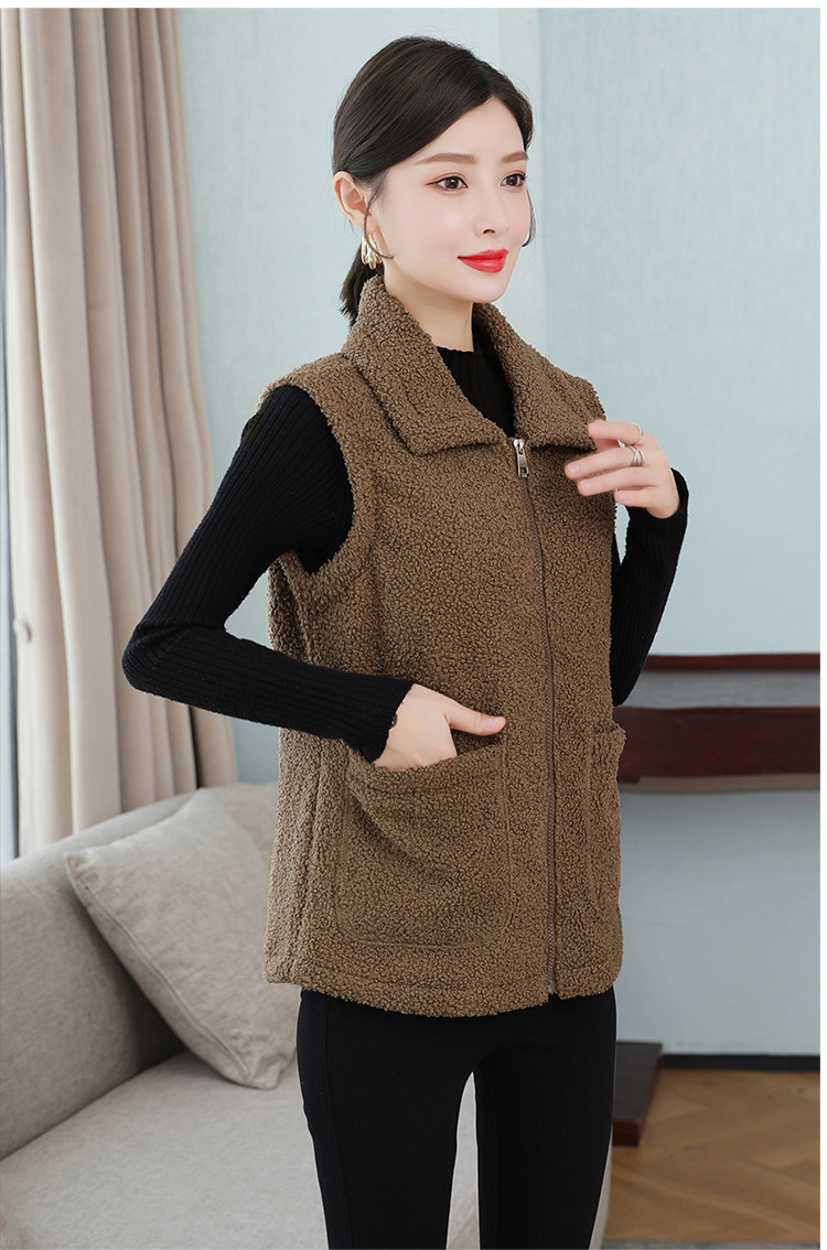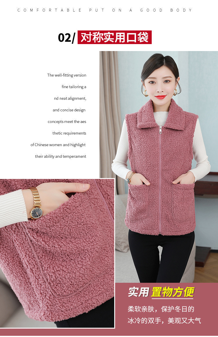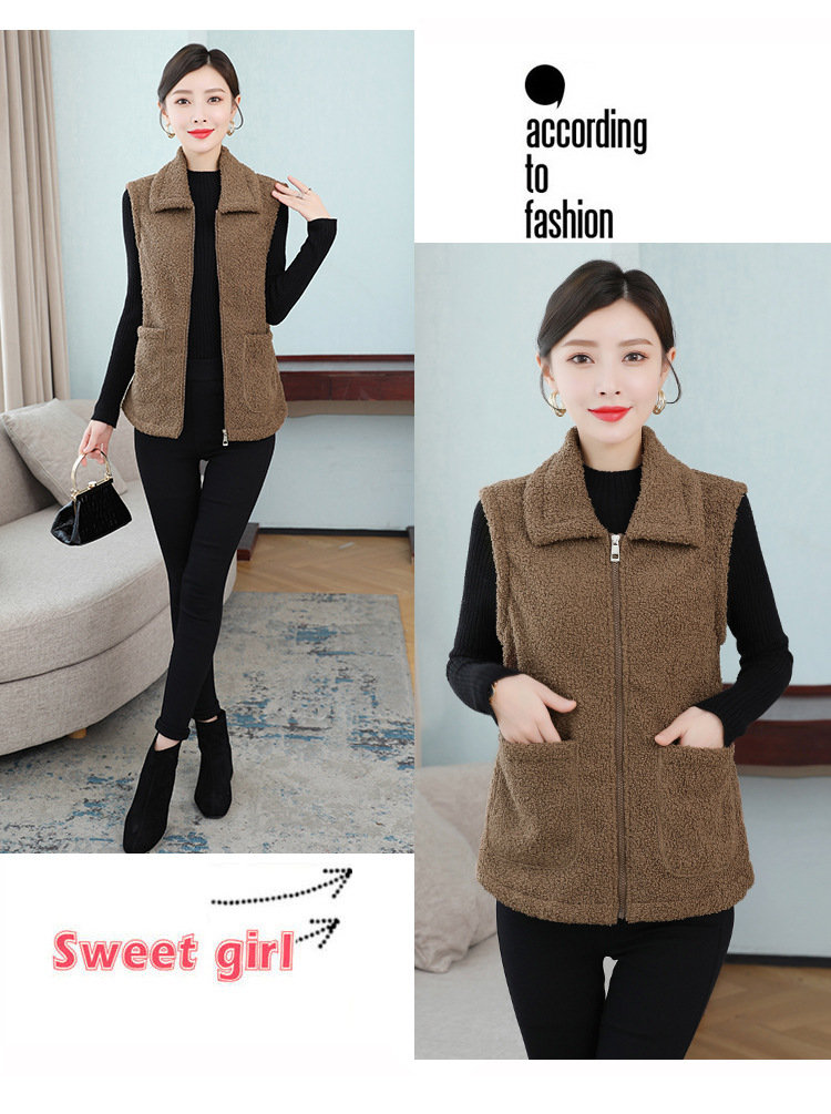 Lambswool 조끼 여성의 짧은 가을 및 겨울 겉옷 스탠드 칼라 기모 두꺼운 중년 및 노인 양복 조끼 착용스토어 가기