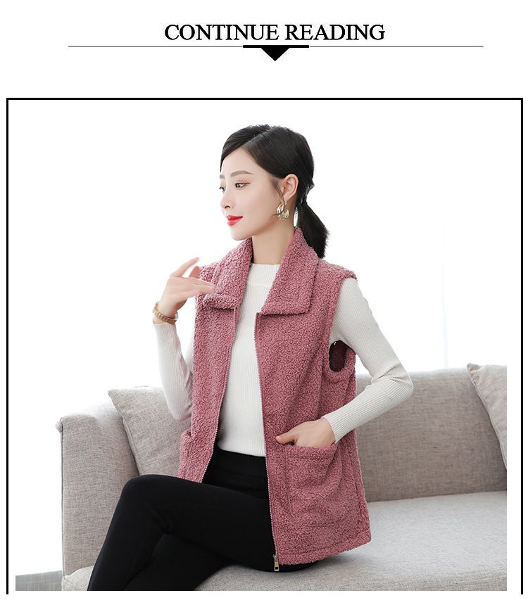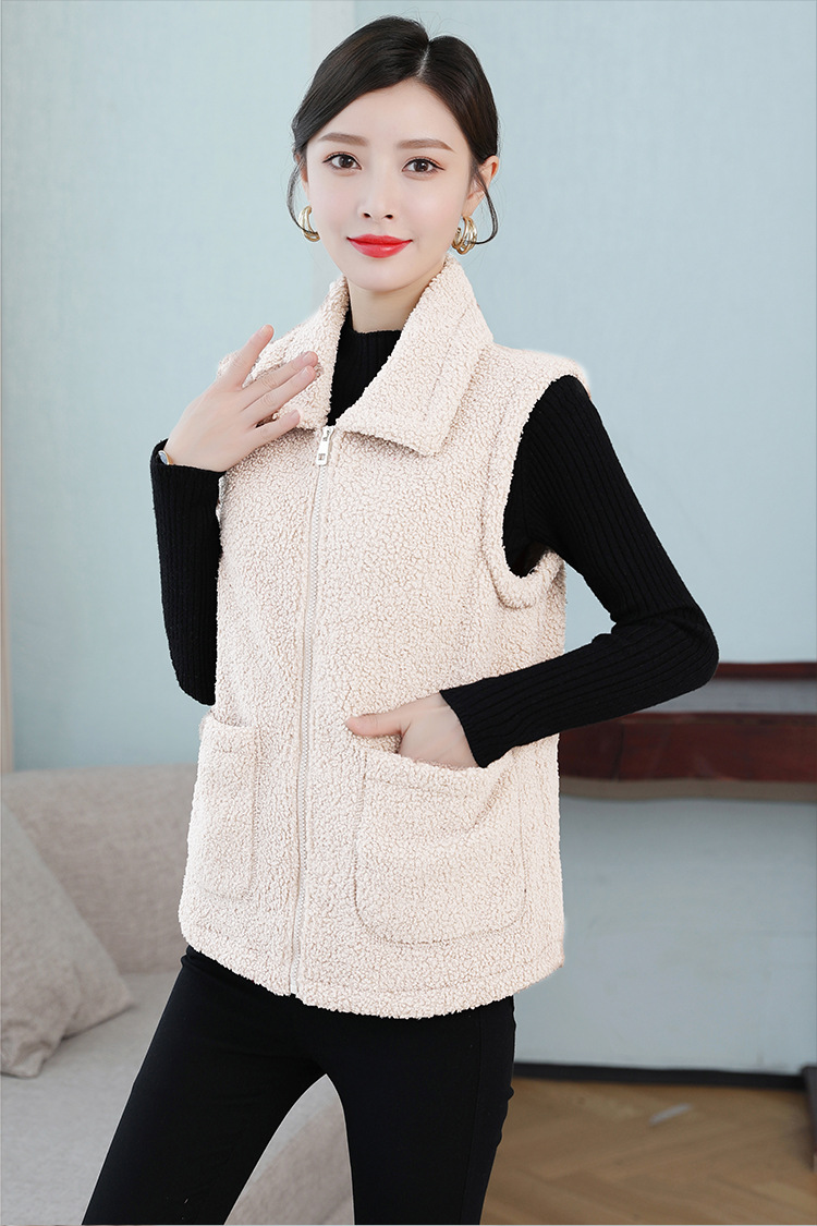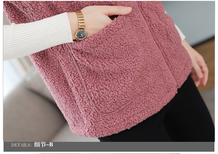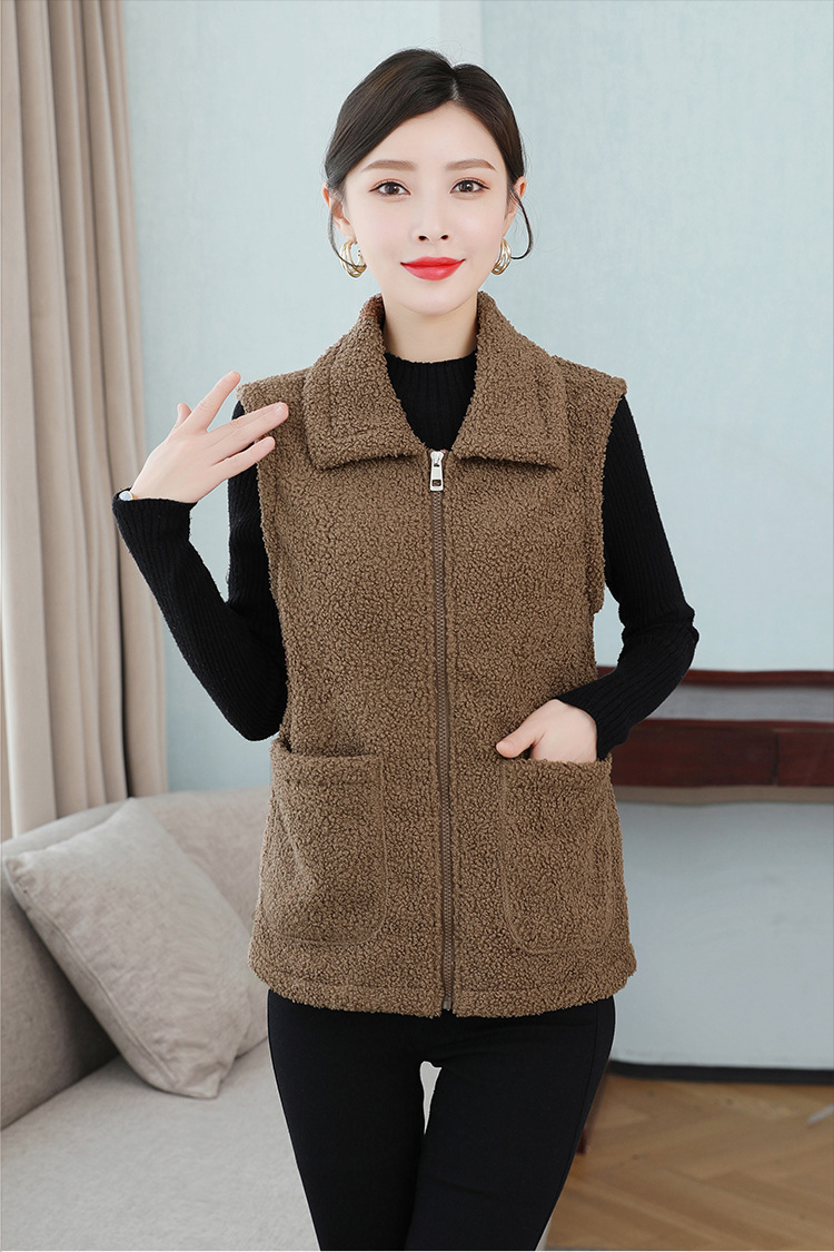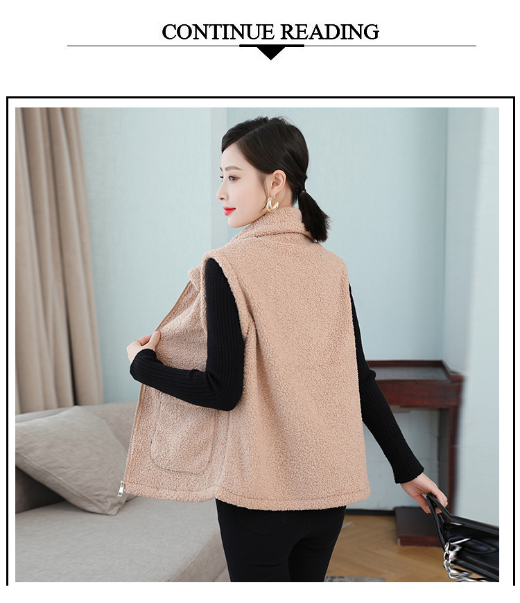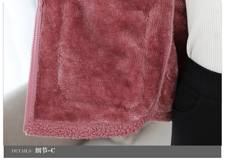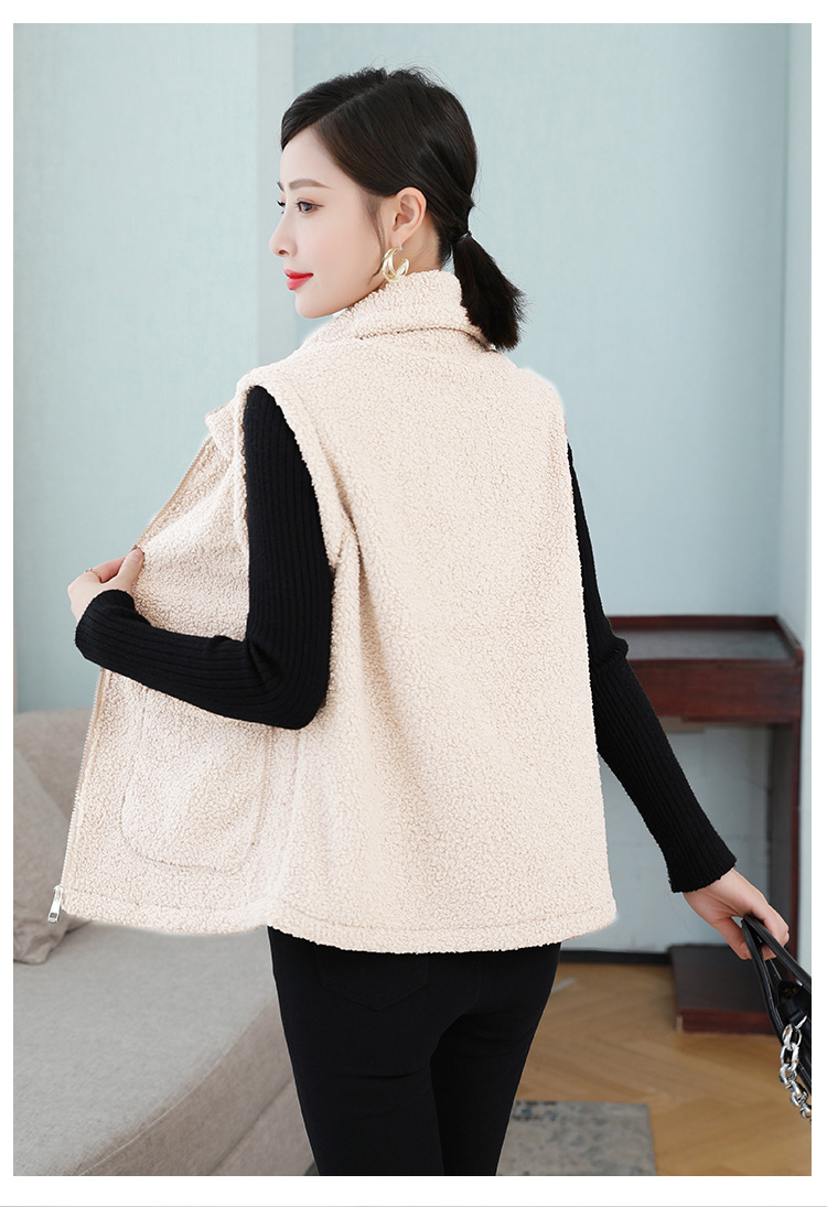 Lambswool 조끼 여성의 짧은 가을 및 겨울 겉옷 스탠드 칼라 기모 두꺼운 중년 및 노인 양복 조끼 착용스토어 가기