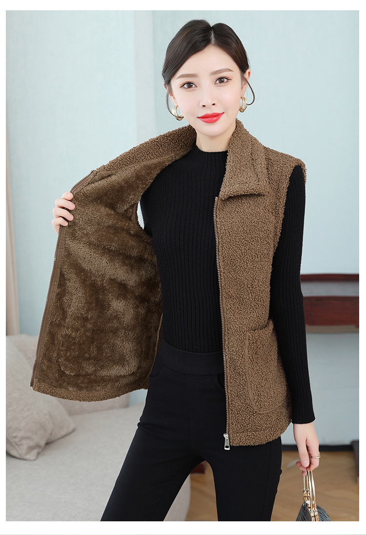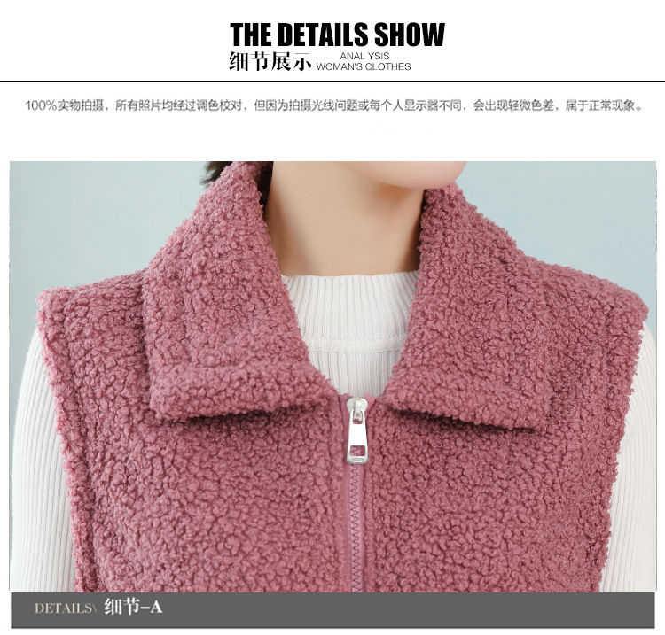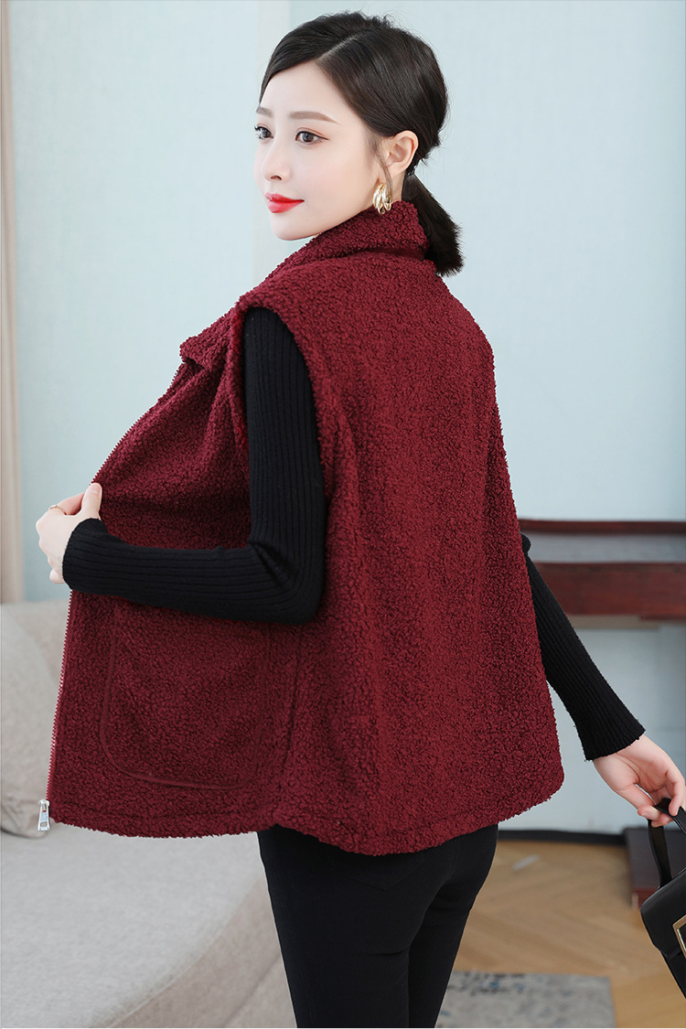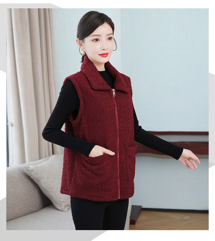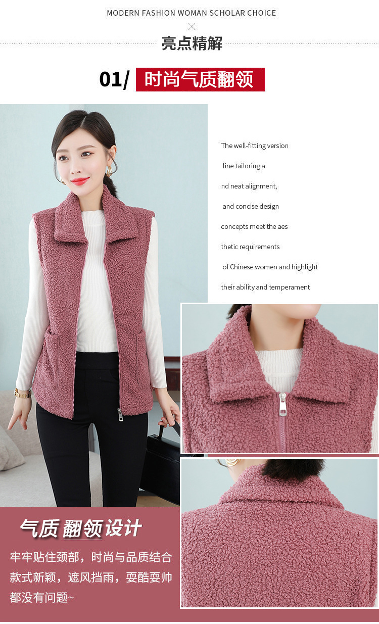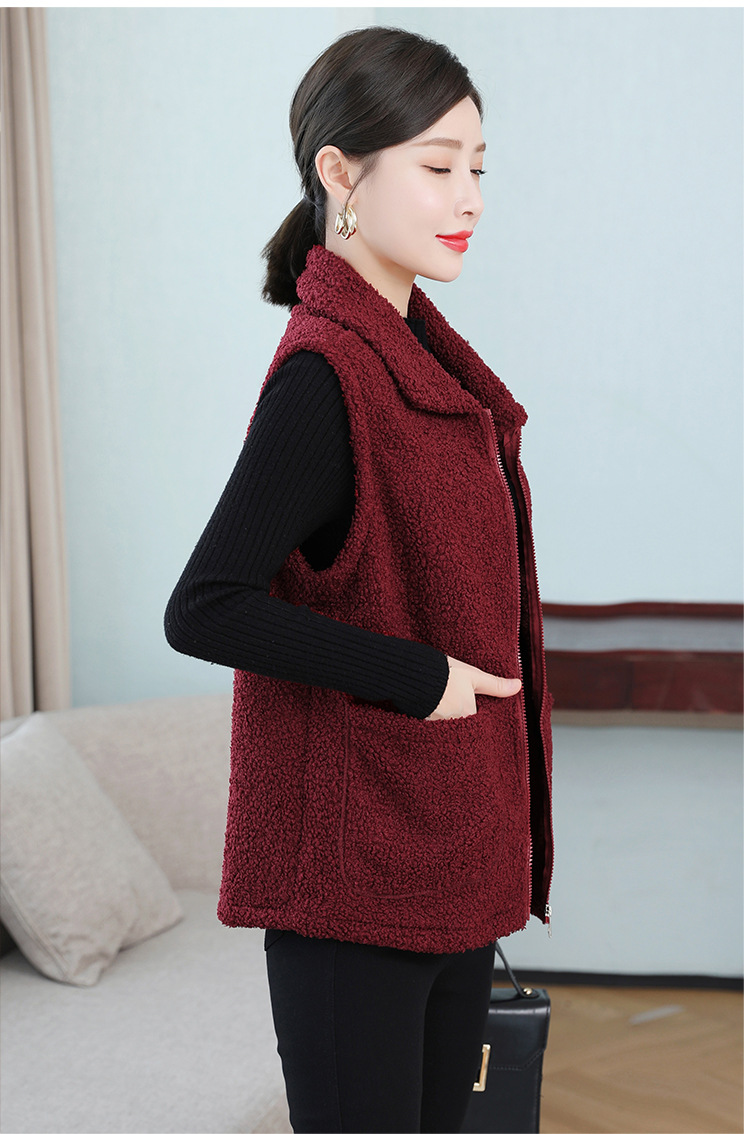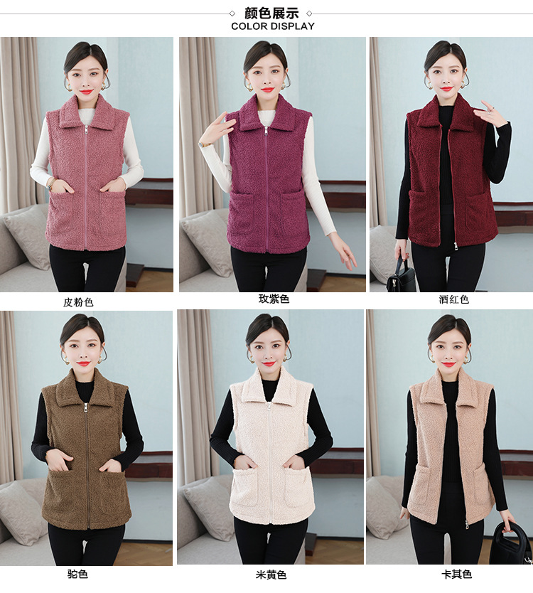 Lambswool 조끼 여성의 짧은 가을 및 겨울 겉옷 스탠드 칼라 기모 두꺼운 중년 및 노인 양복 조끼 착용