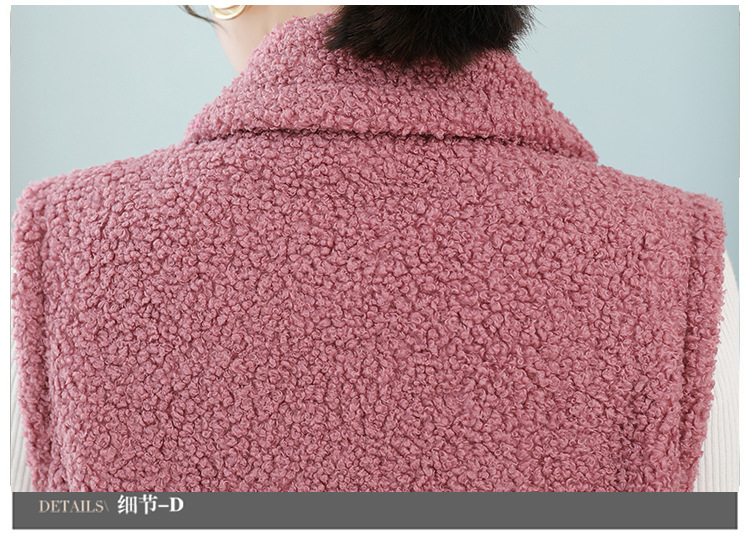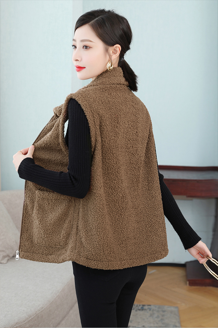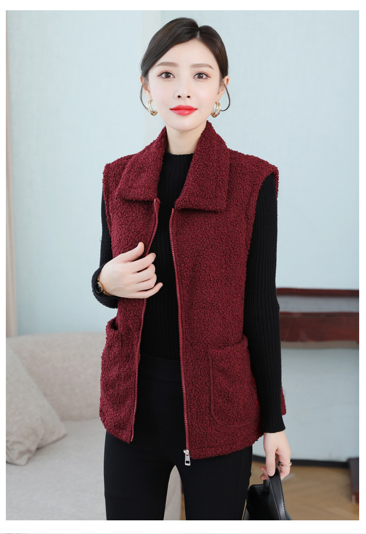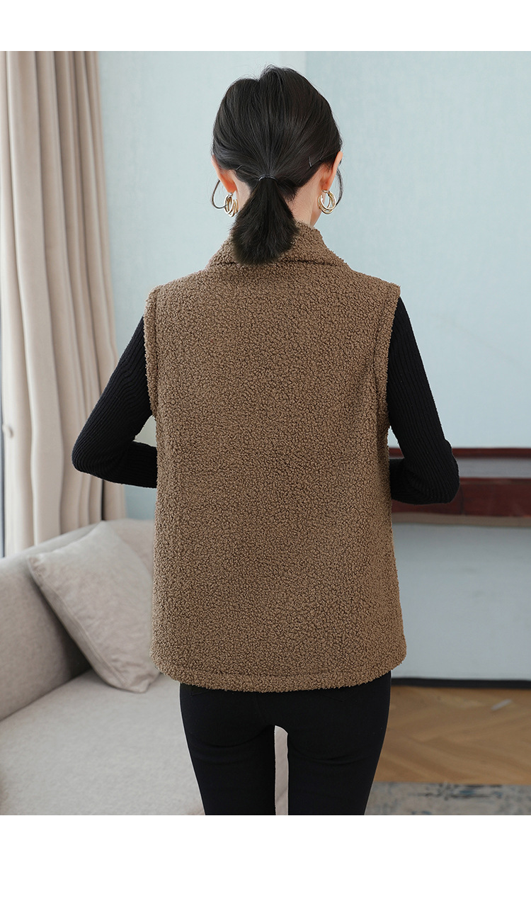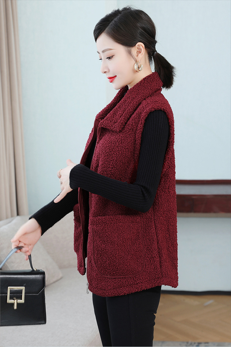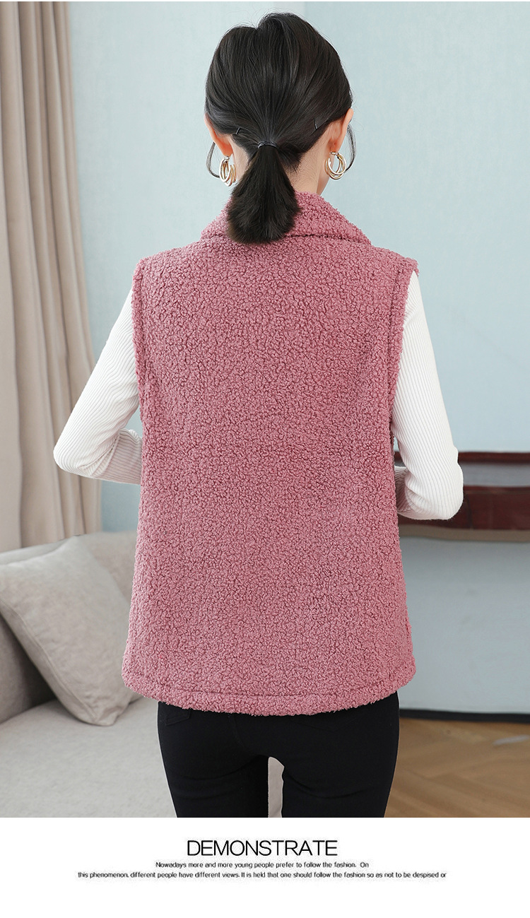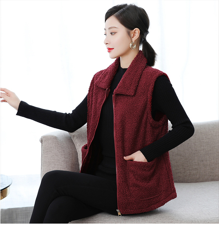 Lambswool 조끼 여성의 짧은 가을 및 겨울 겉옷 스탠드 칼라 기모 두꺼운 중년 및 노인 양복 조끼 착용