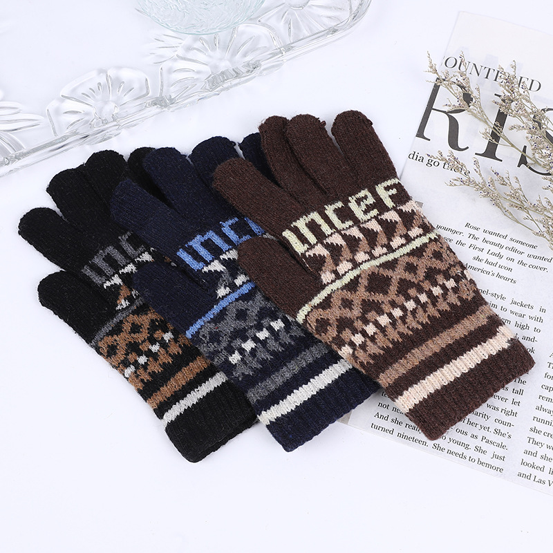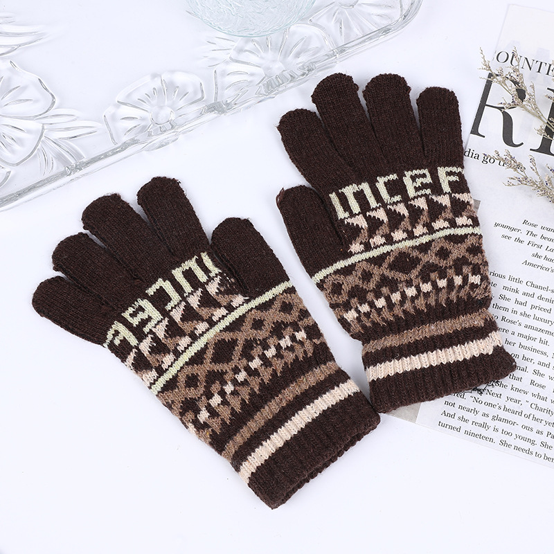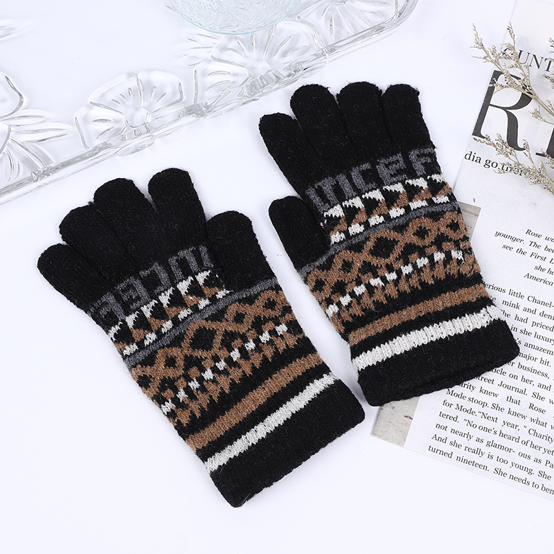 국경 간 무역 니트 보온 장갑 겨울용 분리형 손가락 장갑 여성용 자카드 장갑 비터치스크린