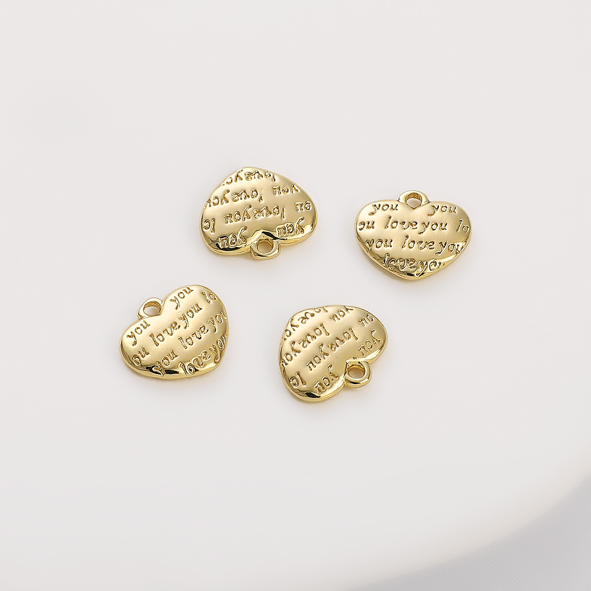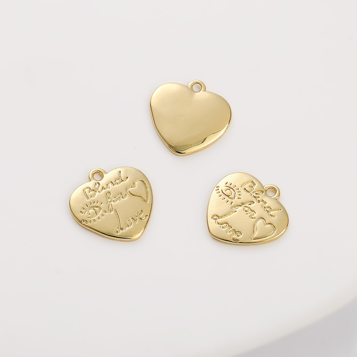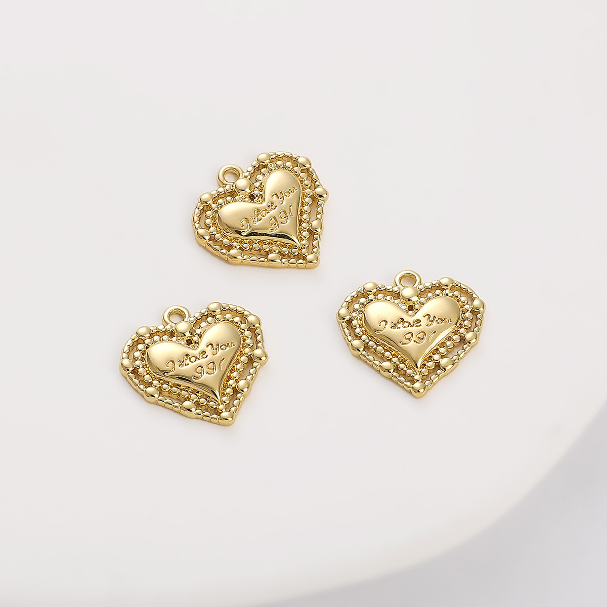 14K 도금 구리 레이스 문자 하트 펜던트 목걸이 귀걸이 수제 DIY 변색 방지 금 장신구