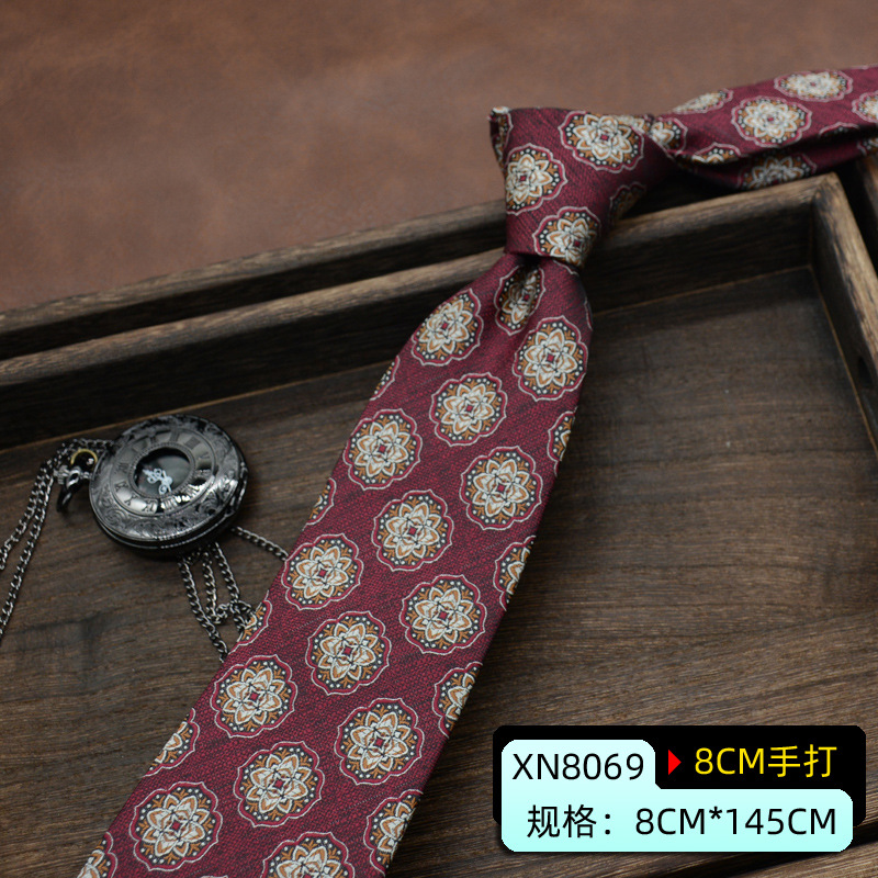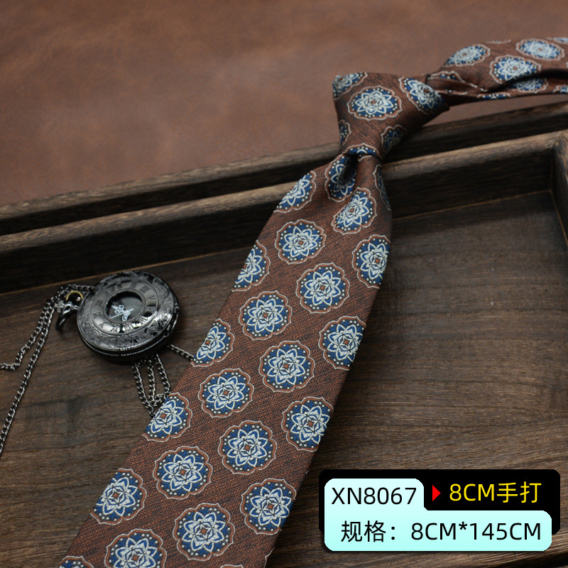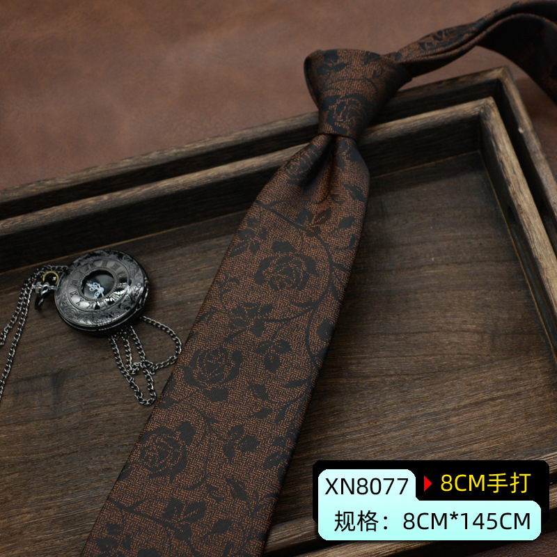 넥타이 남자의 원피스 영국 한국 스타일 꽃 유럽과 미국 스타일 복고풍 다크 브라운 8cm 손 넥타이 스타일 작업 학생 비즈니스웨어
