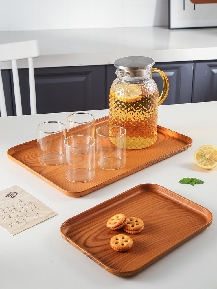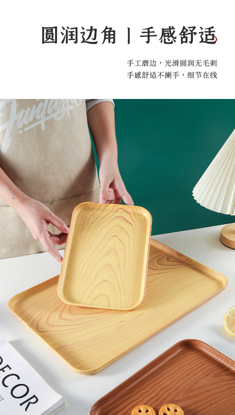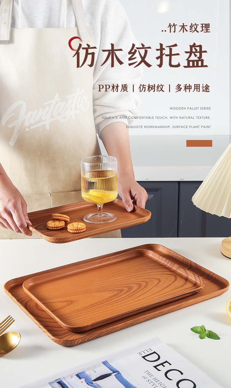 국경 간 모조 우드 그레인 플라스틱 트레이 빵 베이킹 바베큐 트레이 직사각형 트레이 카페 디저트 플레이트 케이크 플레이트