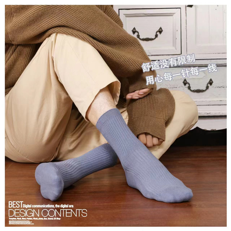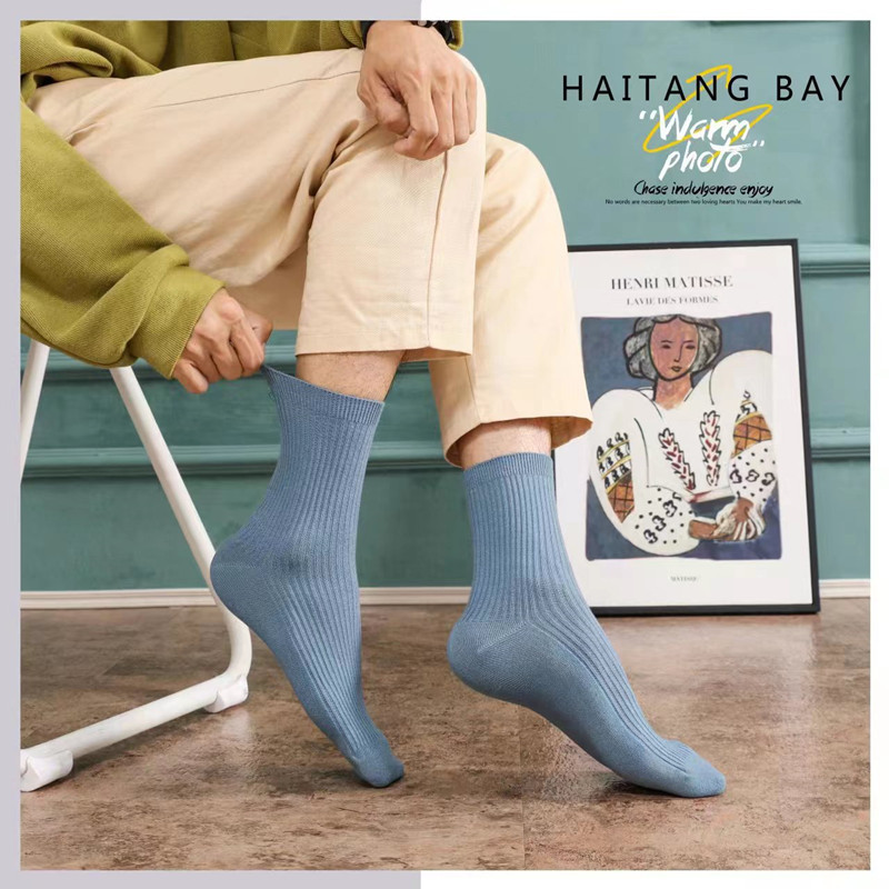 Jiaying 남성용 더블 니들 고층 남성 캐주얼 면 양말 땀 흡수, 통기성, 필링 없음, 냄새 없는 발