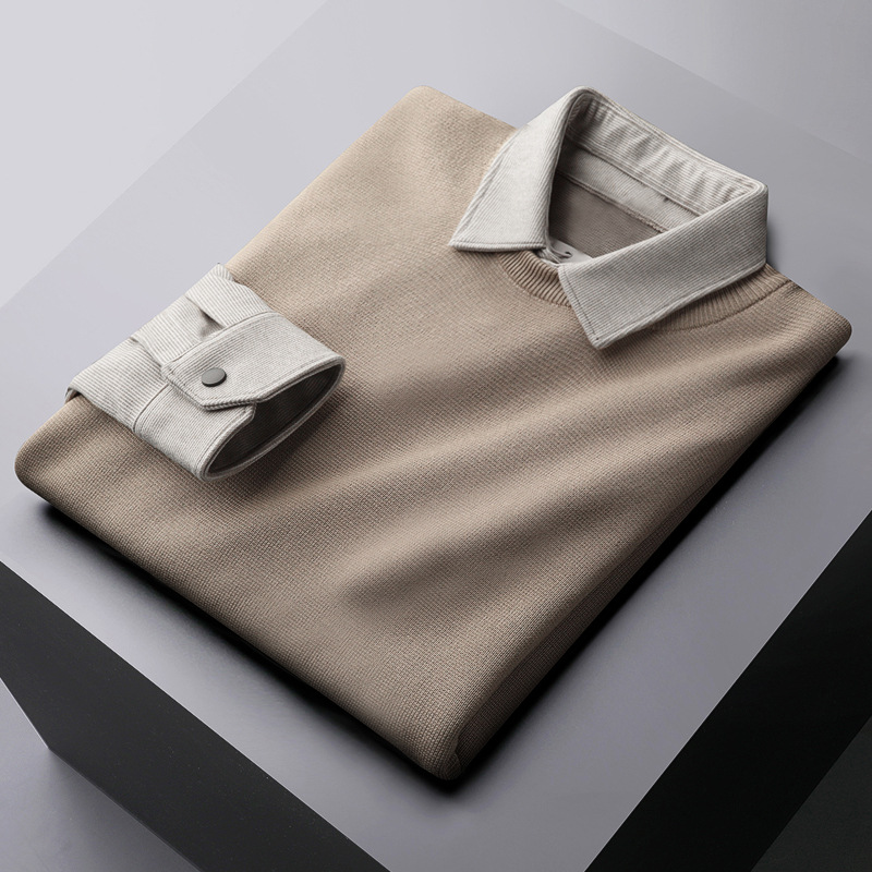 가벼운 비즈니스 남성용 가짜 투피스 스웨터 가을과 겨울 2023 따뜻한 셔츠 칼라 스웨터 트렌드 캐주얼 탑 1688