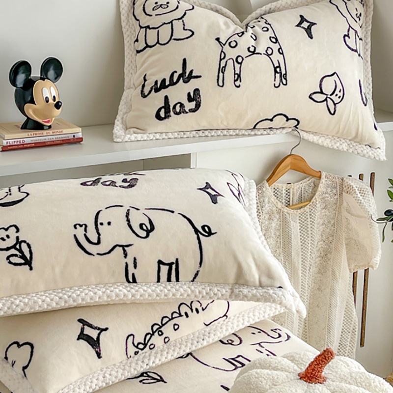 겨울용 A급 양털 양면 벨벳 2025 신형 두꺼운 밀크 벨벳 베개 커버 싱글 만화 어린이 베개 커버