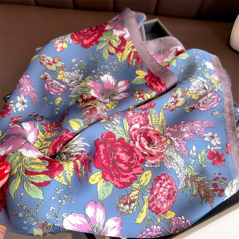 프렌치 로즈 70 프린트 스퀘어 스카프 봄과 여름 자외선 차단제 숄 얇은 스카프 다목적 장식 스카프 여성용 터번 스카프